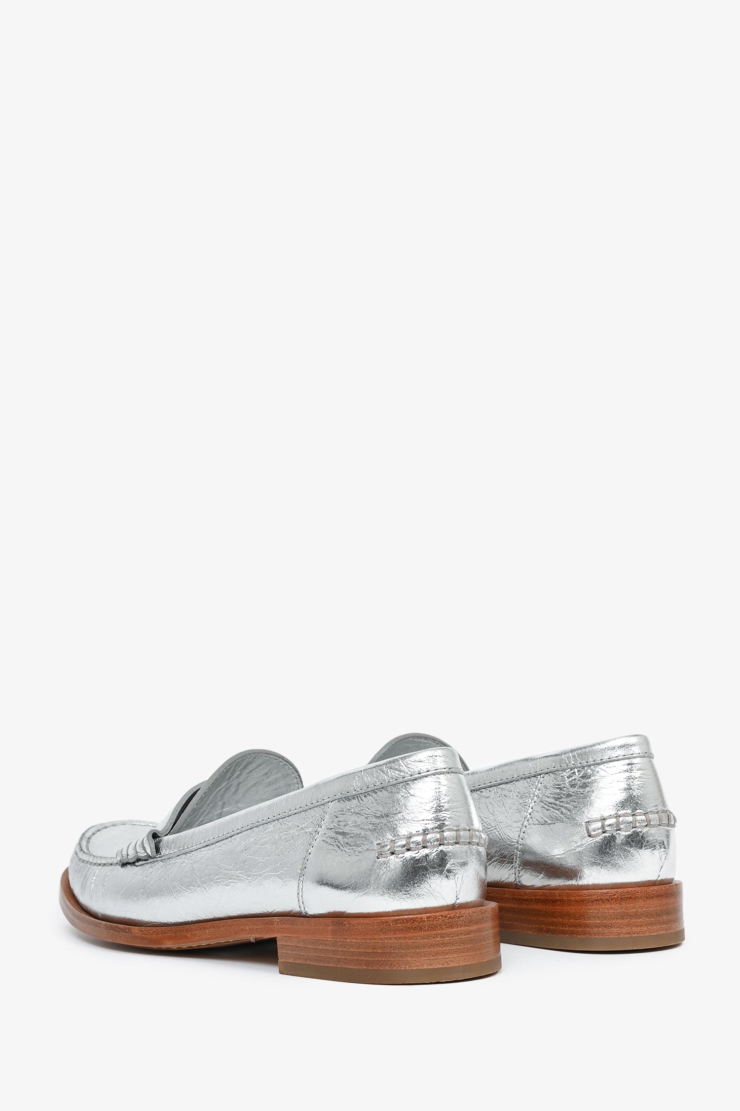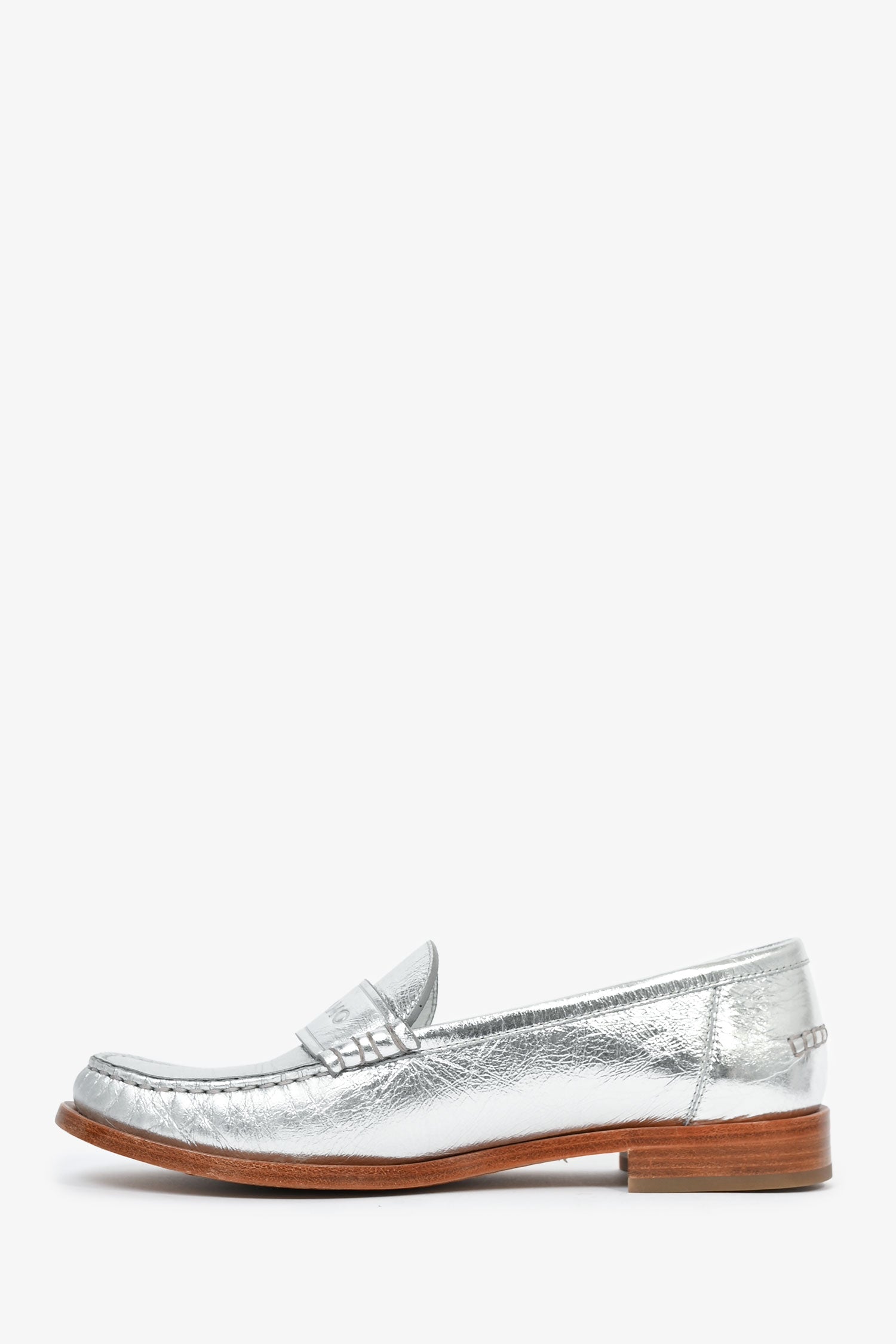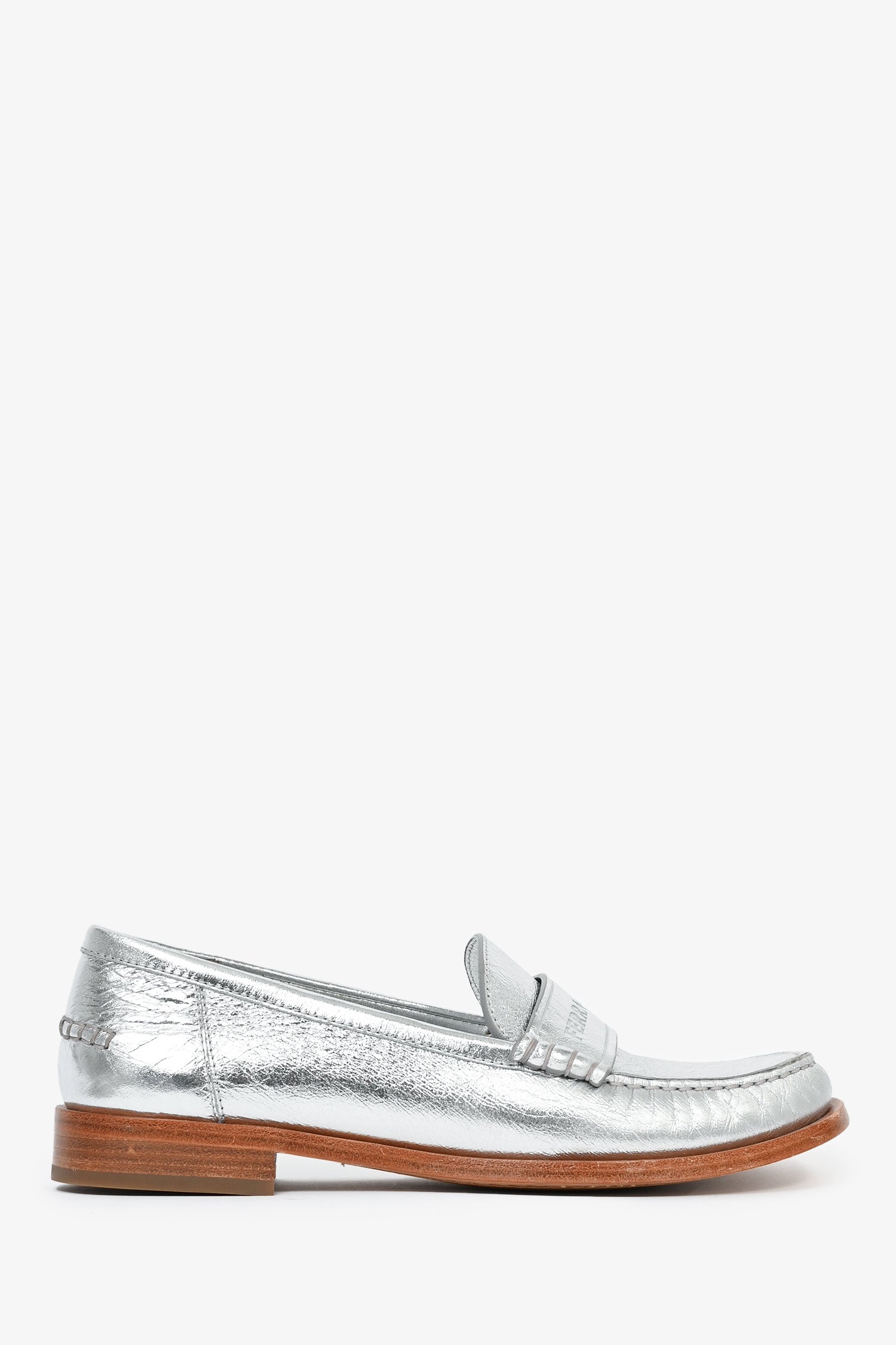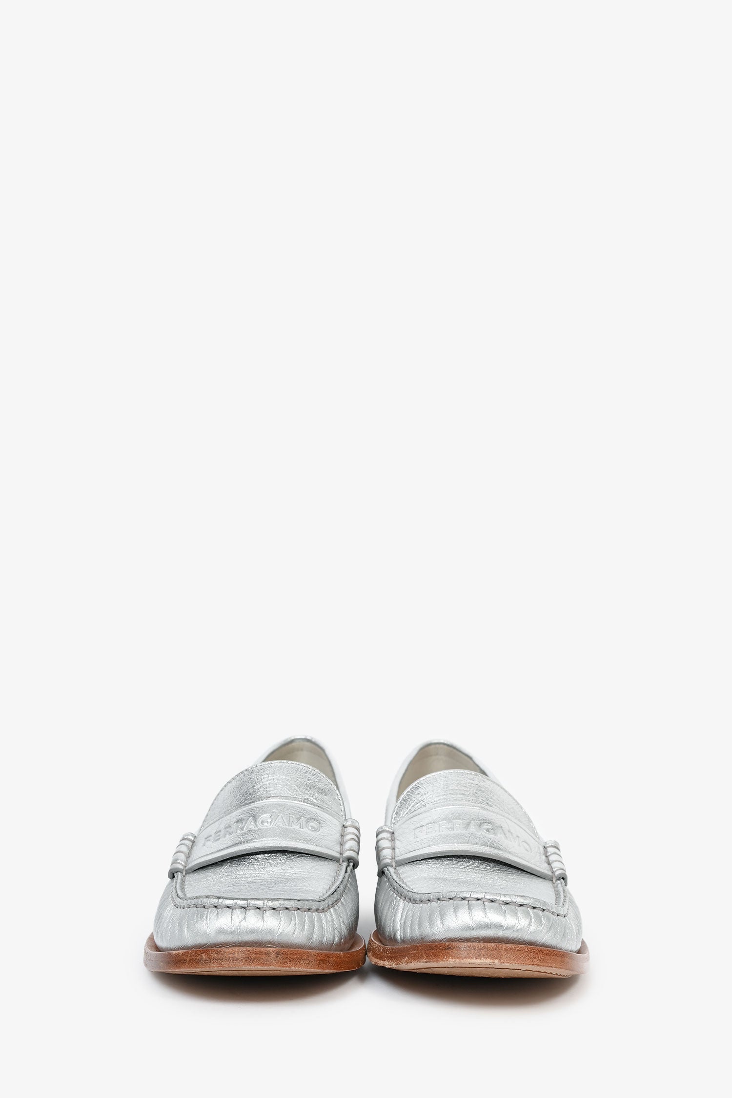 Refresh availabilitySalvatore Ferragamo Silver Leather Slip-On Loafers. Round toe. Brand name at the upper.