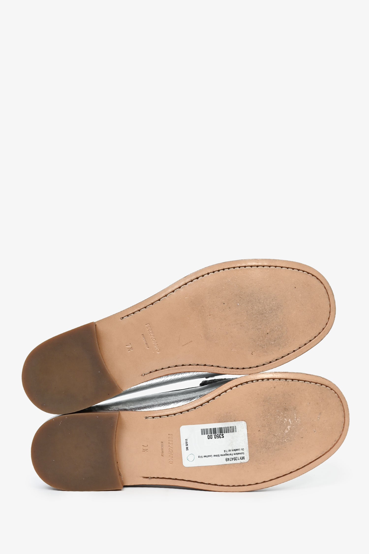 Salvatore Ferragamo Silver Leather Slip-On Loafers Size 7.5