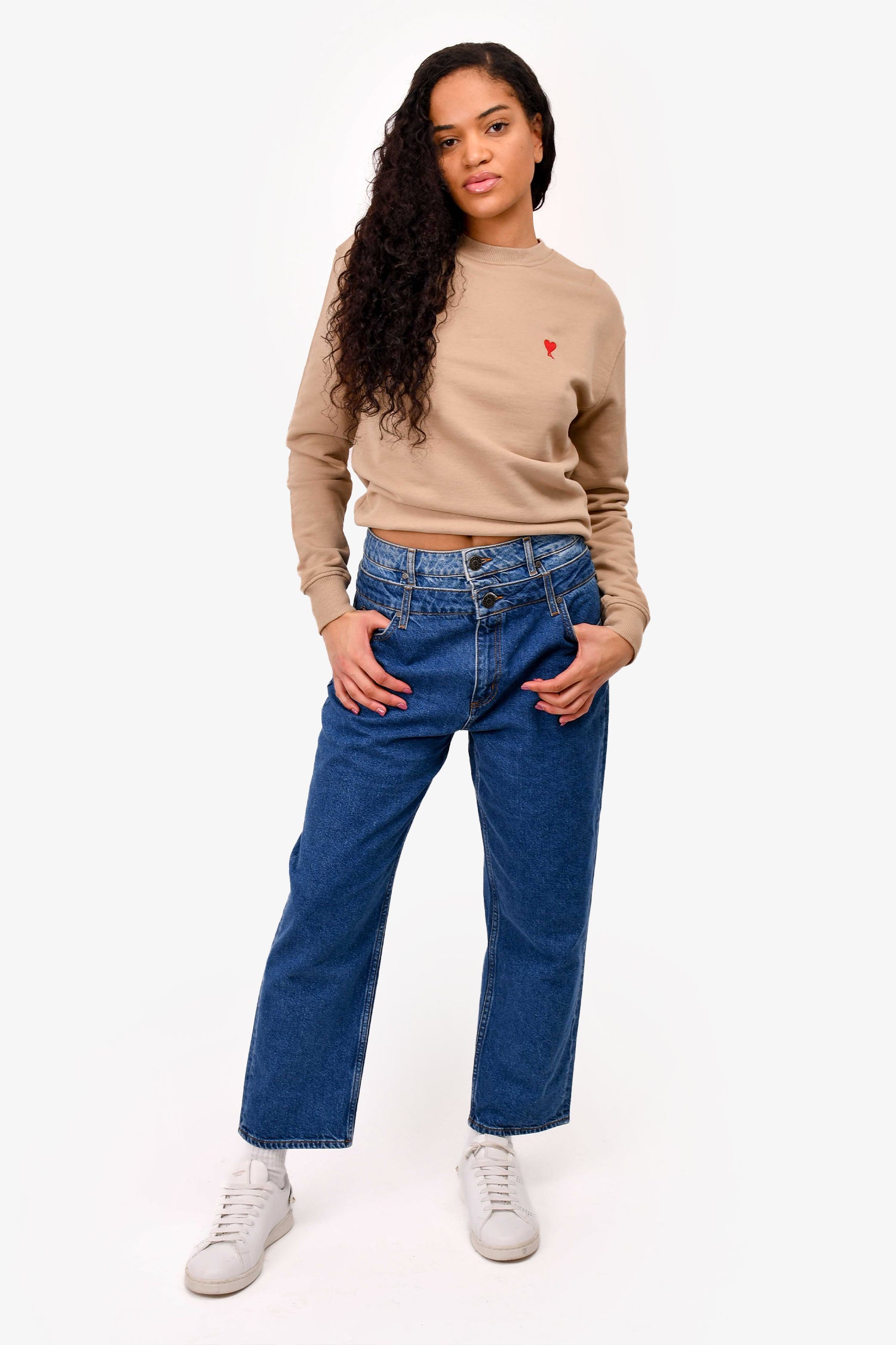 Refresh availabilitySandro 2-Tone Blue Denim Straight Leg Jeans. Front zip and button closure. Front and rear pockets. Waist belt loops.