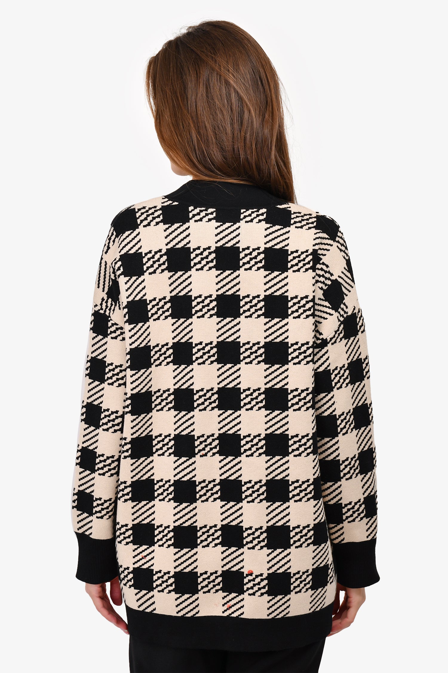 Sandro Beige/Black Houndstooth Oversized Cardigan With Gold Buttons Size 1