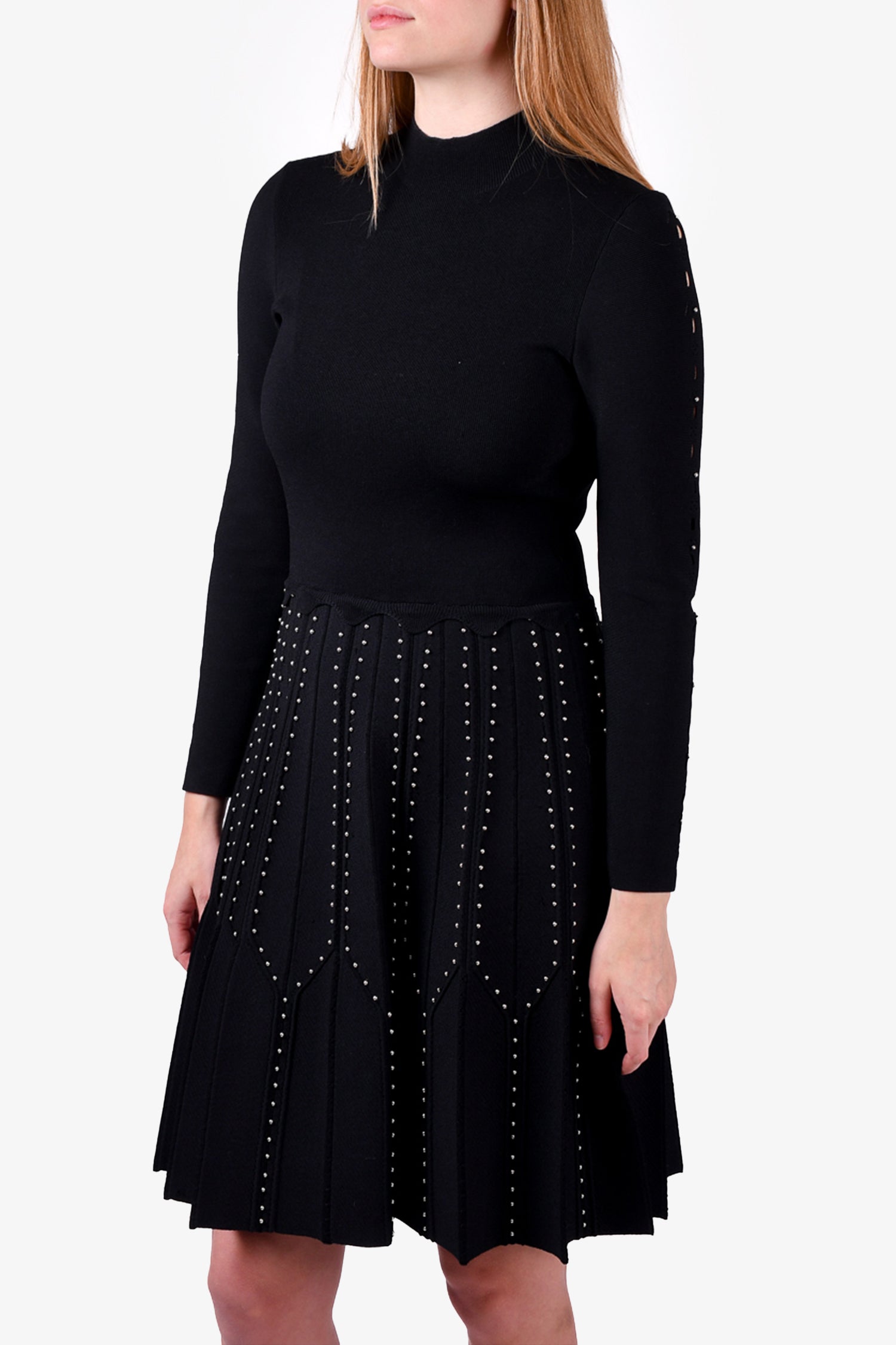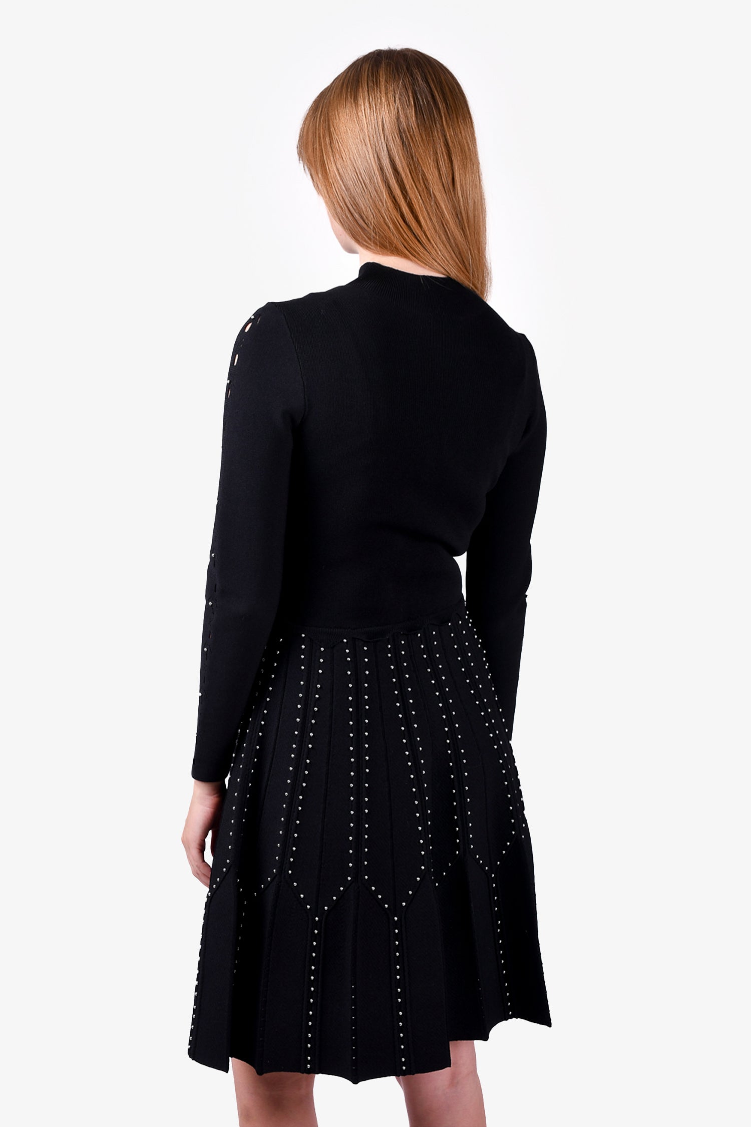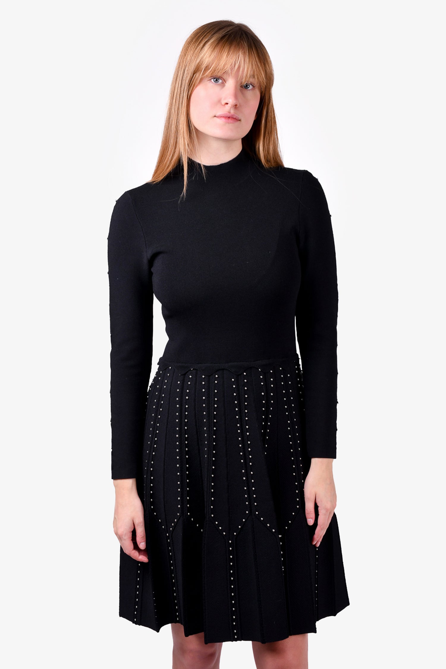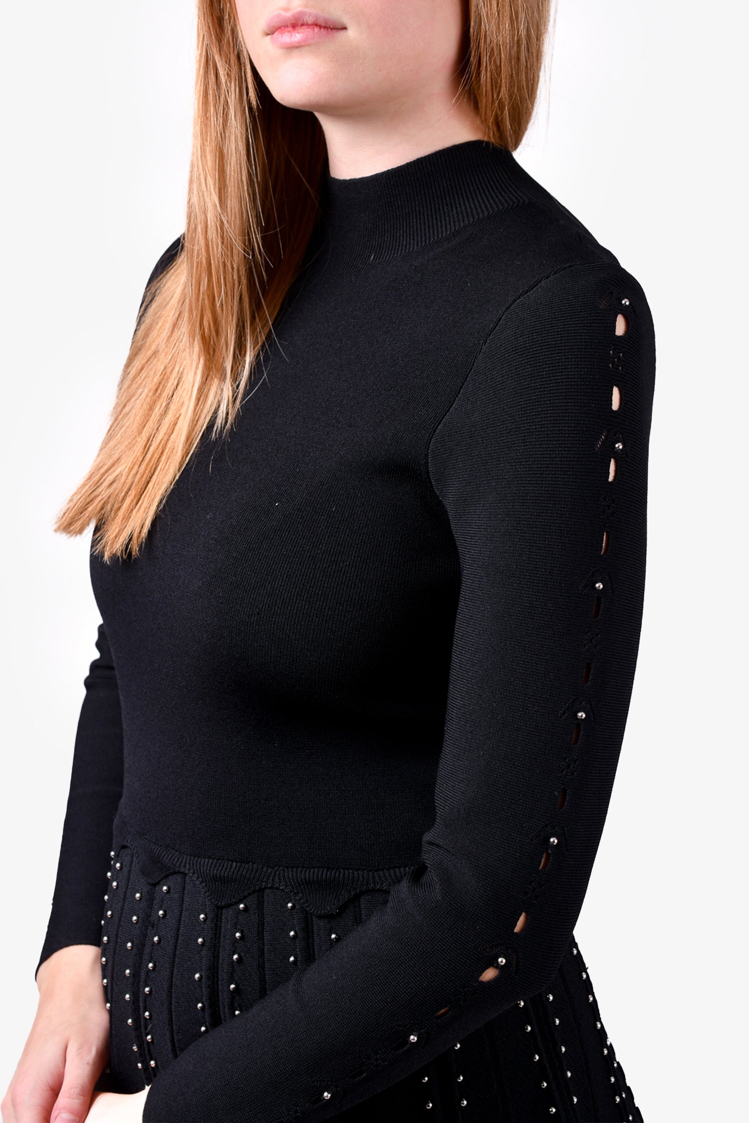 Refresh availabilitySandro Black Studded Midi Dress. Pull-on. Mock neck. Tonal stitching.