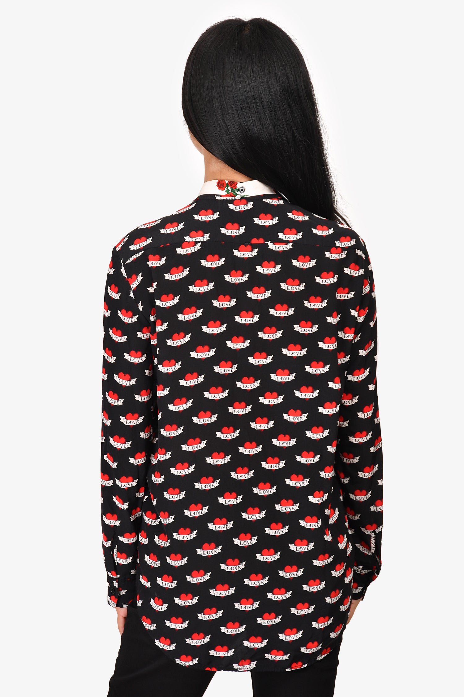 Refresh availabilitySandro Black/Red Heart Printed Bow Detailed Shirt. Tonal stitching. Button down closure.