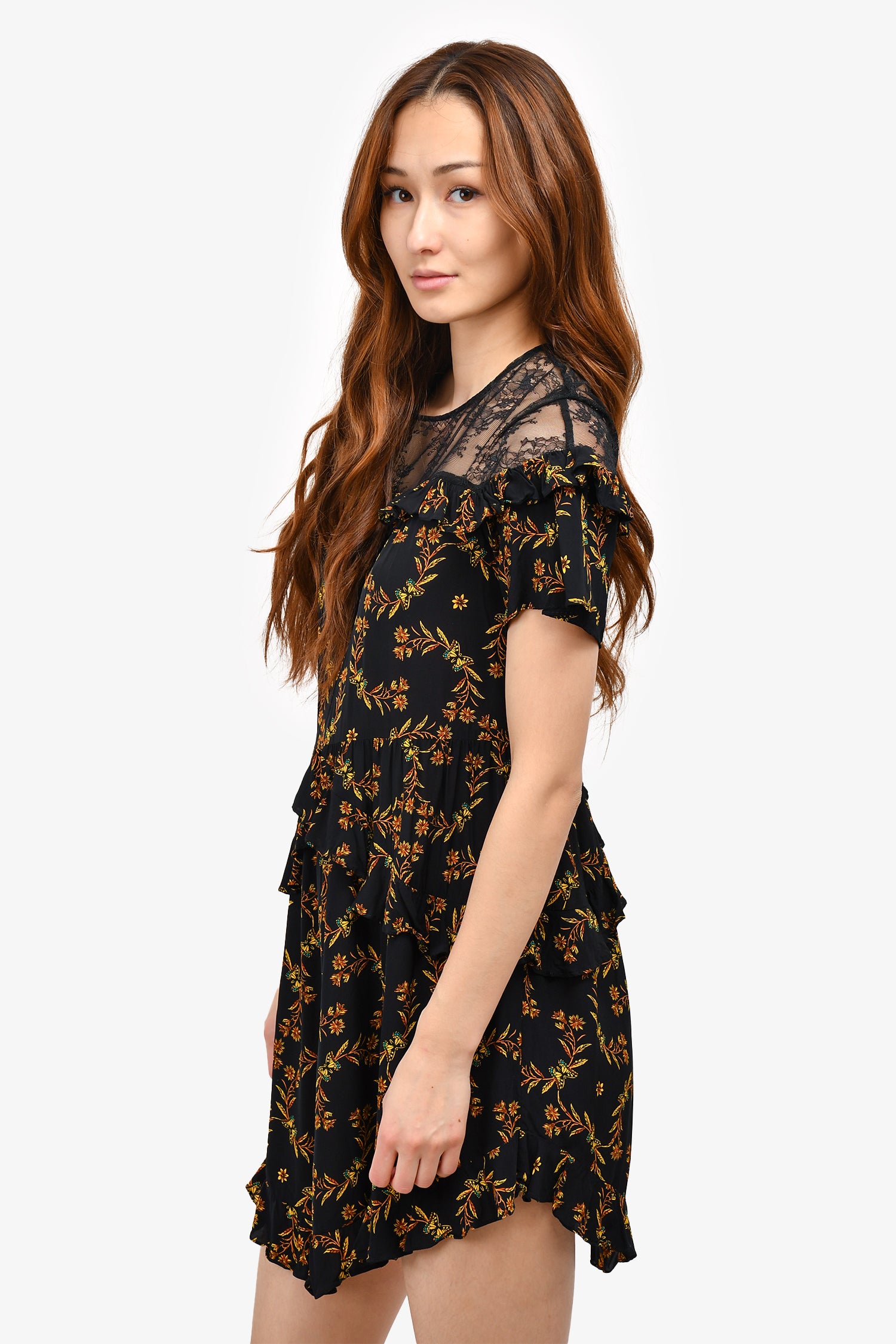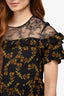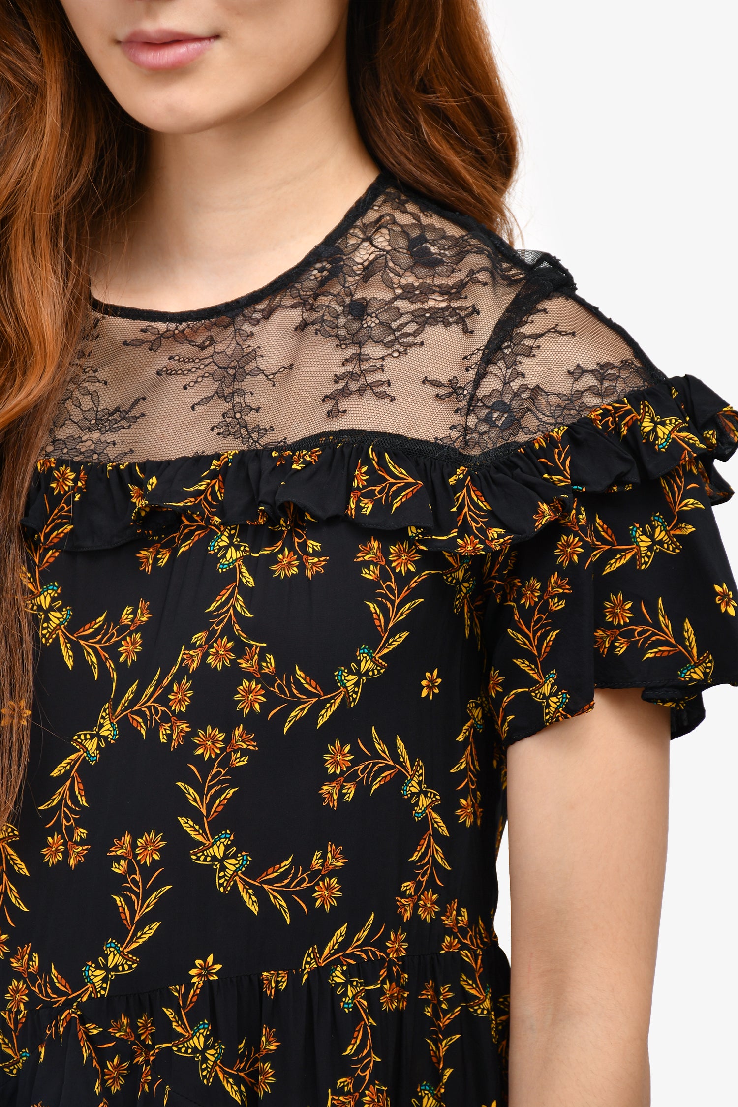 Refresh availabilitySandro Black/Yellow Ruffle Mini Dress with Lace Top.