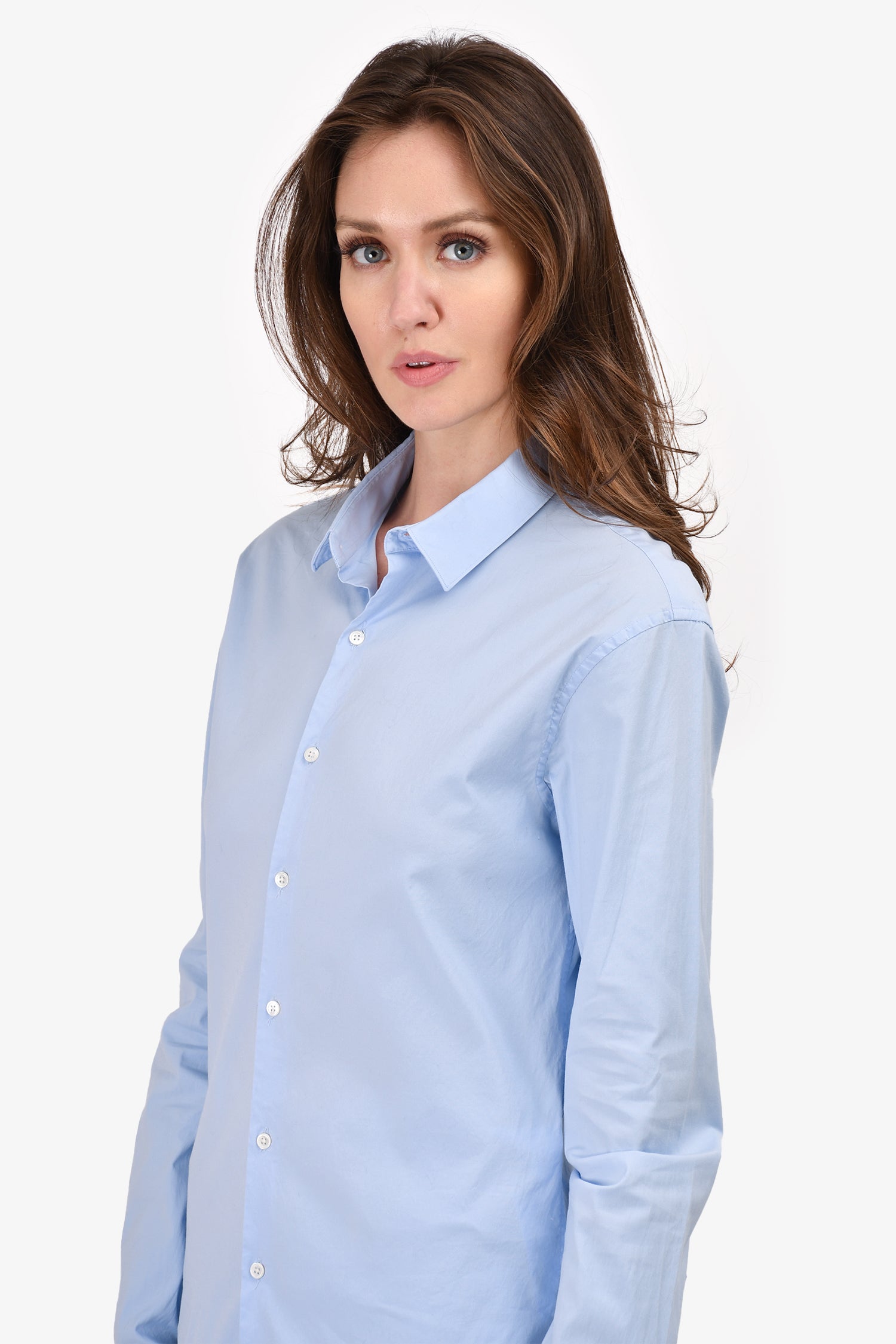 Refresh availabilitySandro Blue Button Down Shirt. Button closures on the cuffs. Tonal stitching.