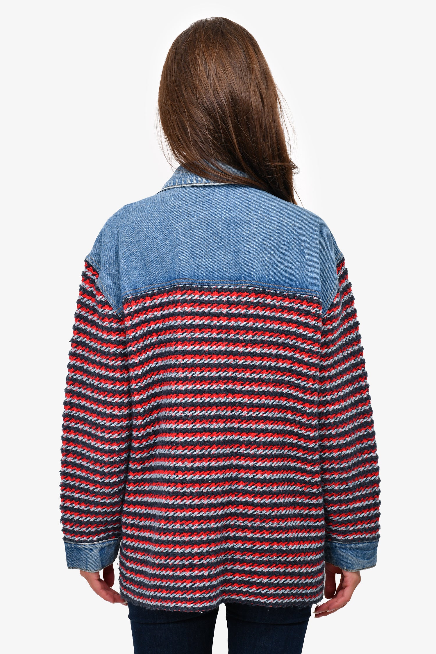 Sandro Blue/Red Denim Striped Knit Detailed Jacket Size 2