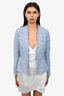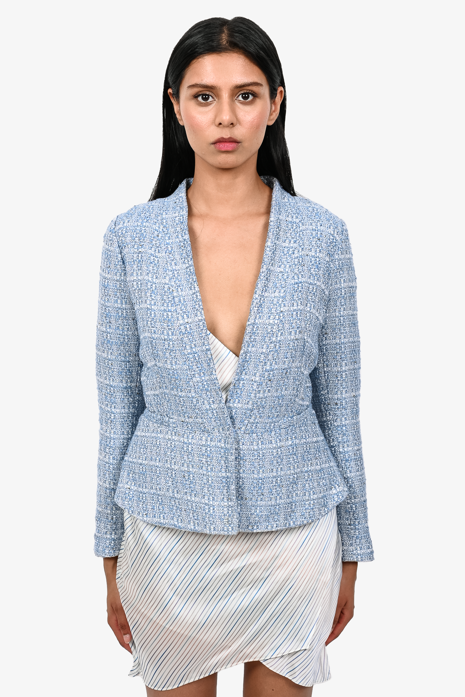 Refresh availabilitySandro Blue/White Tweed Blazer. Single front snap-button closure. Lined. Tonal stitching.