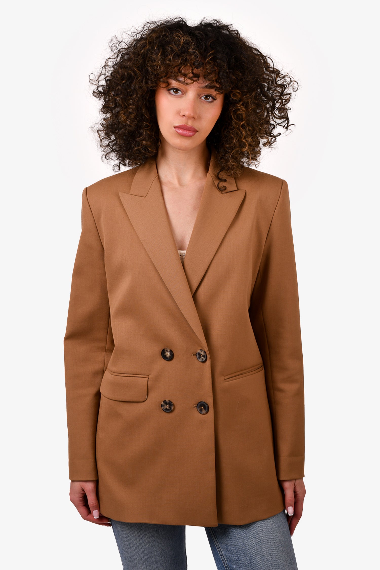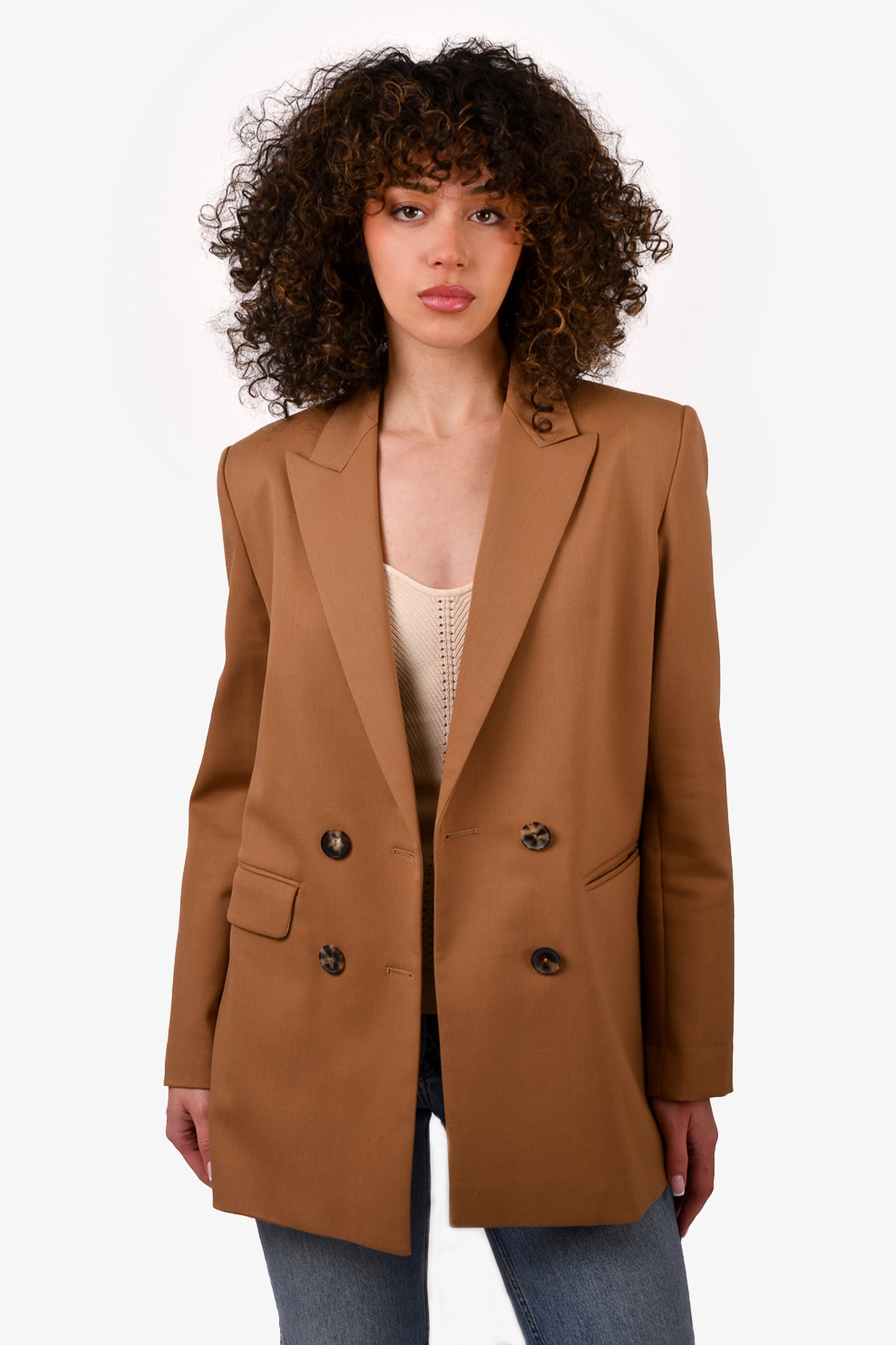 Refresh availabilitySandro Brown Double Breasted Blazer. Front button-up closure. Front pockets. Lined. Padded shoulders. Tonal stitching.