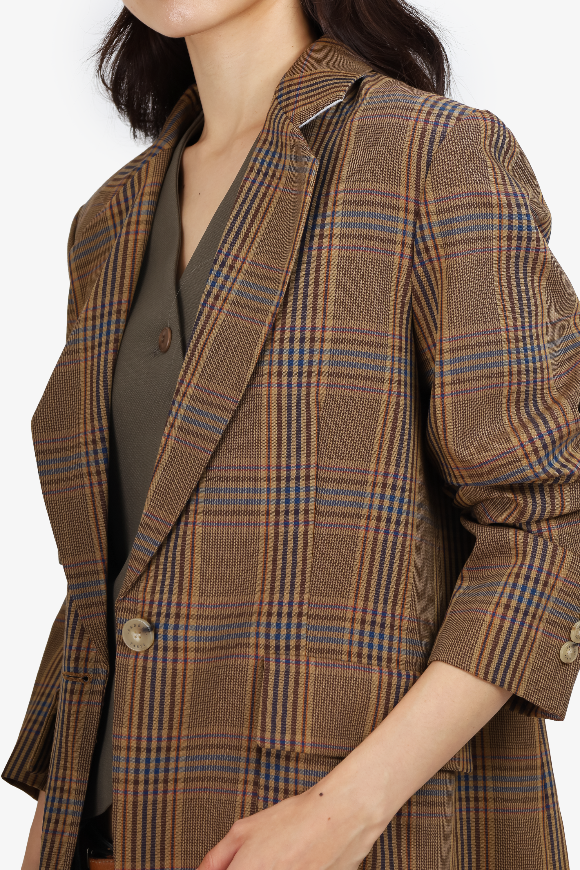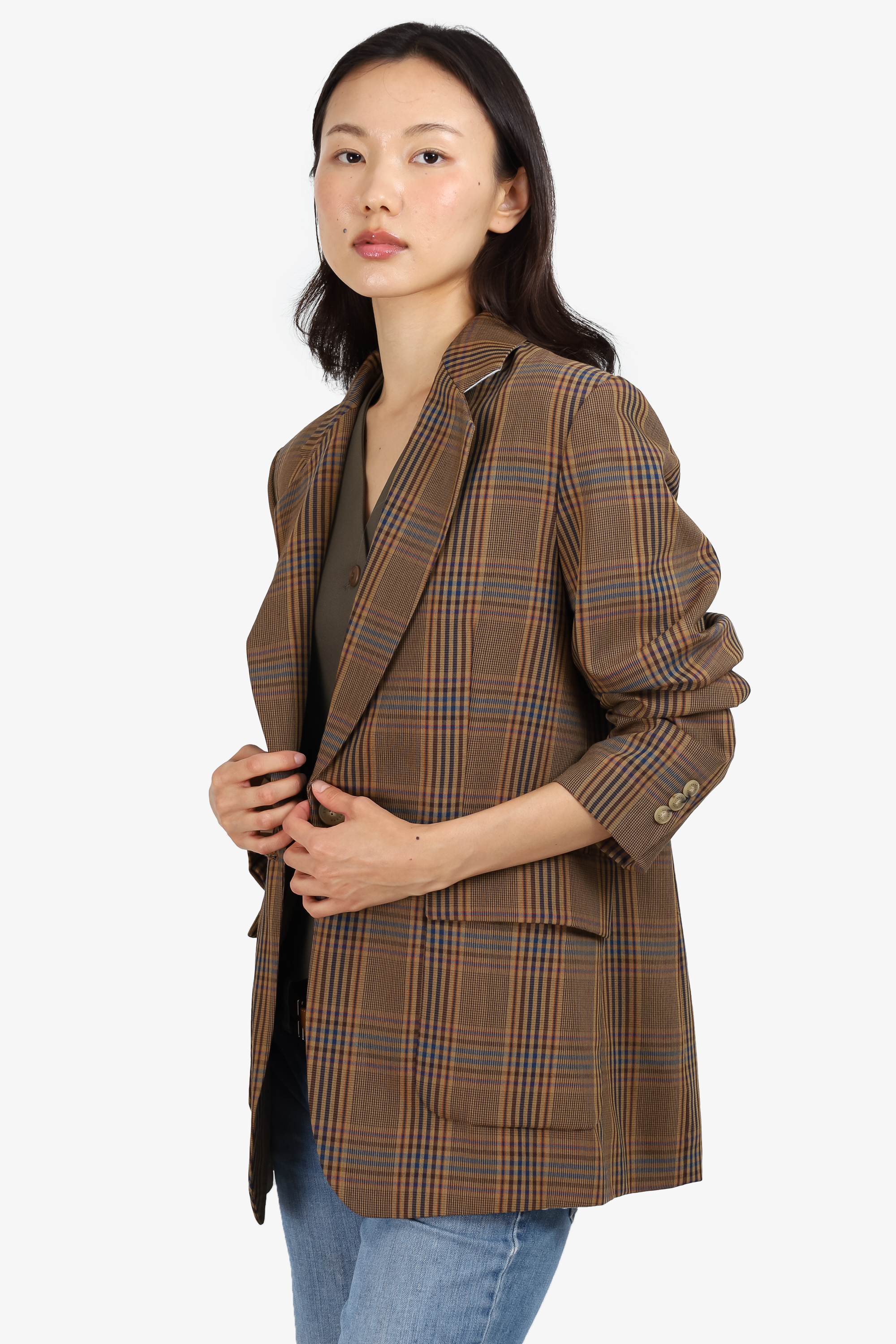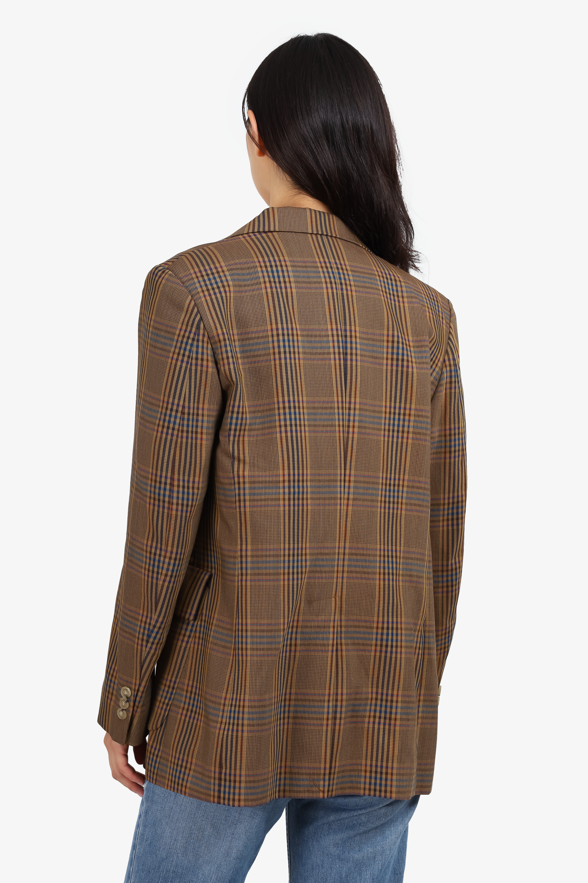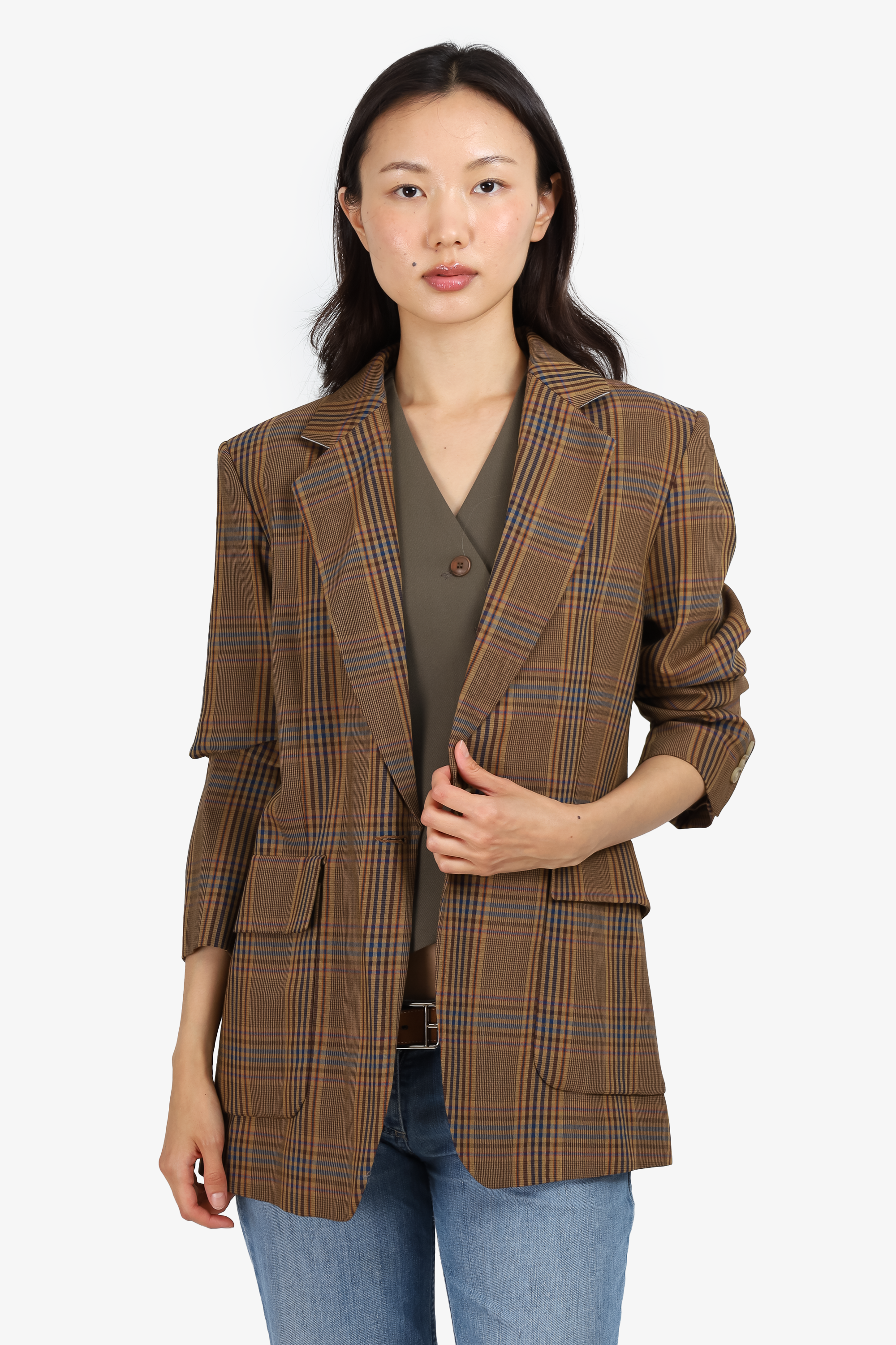 Refresh availabilitySandro Brown Plaid Blazer. Front button closure. Front fold over pockets. Lined. Tonal stitching.