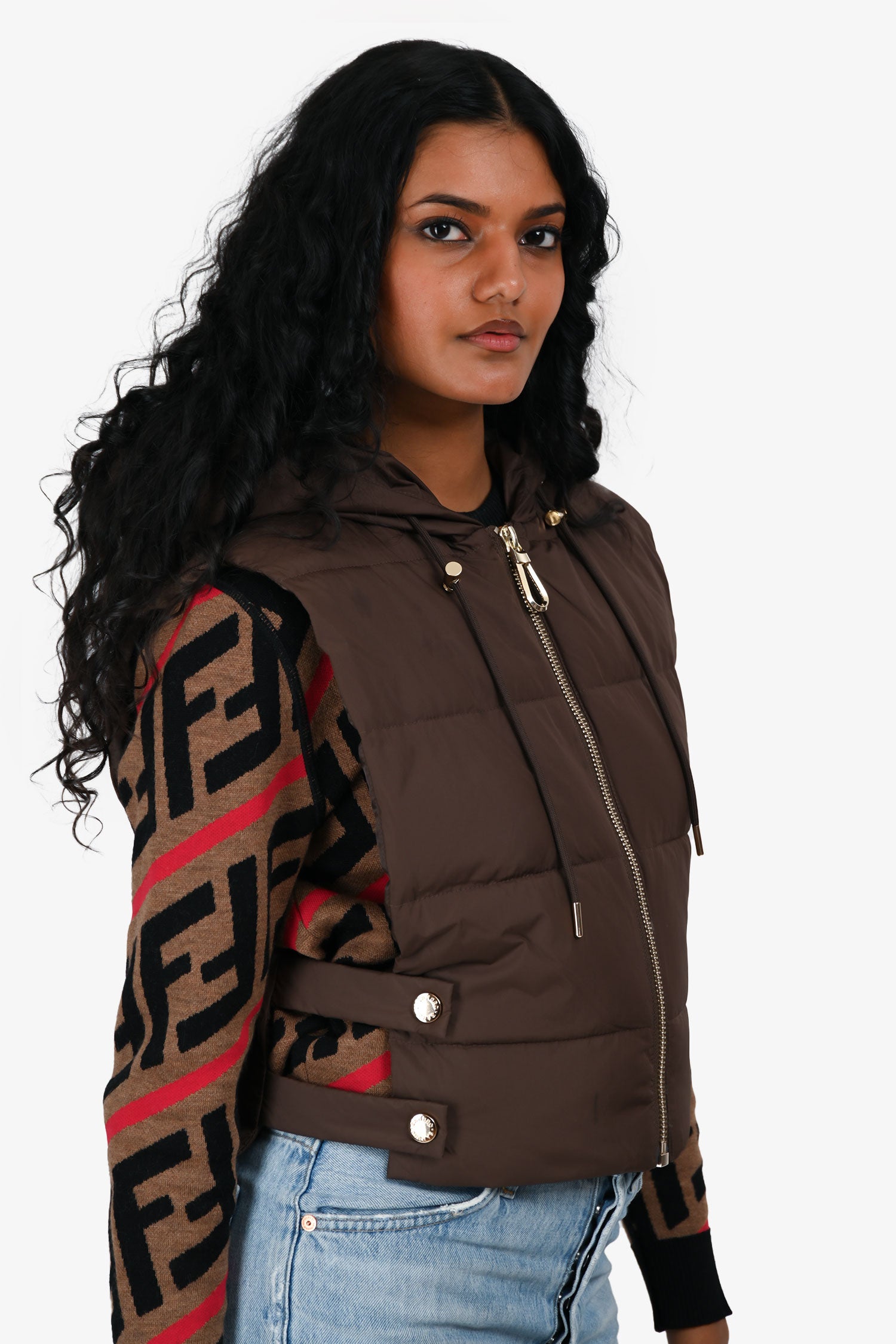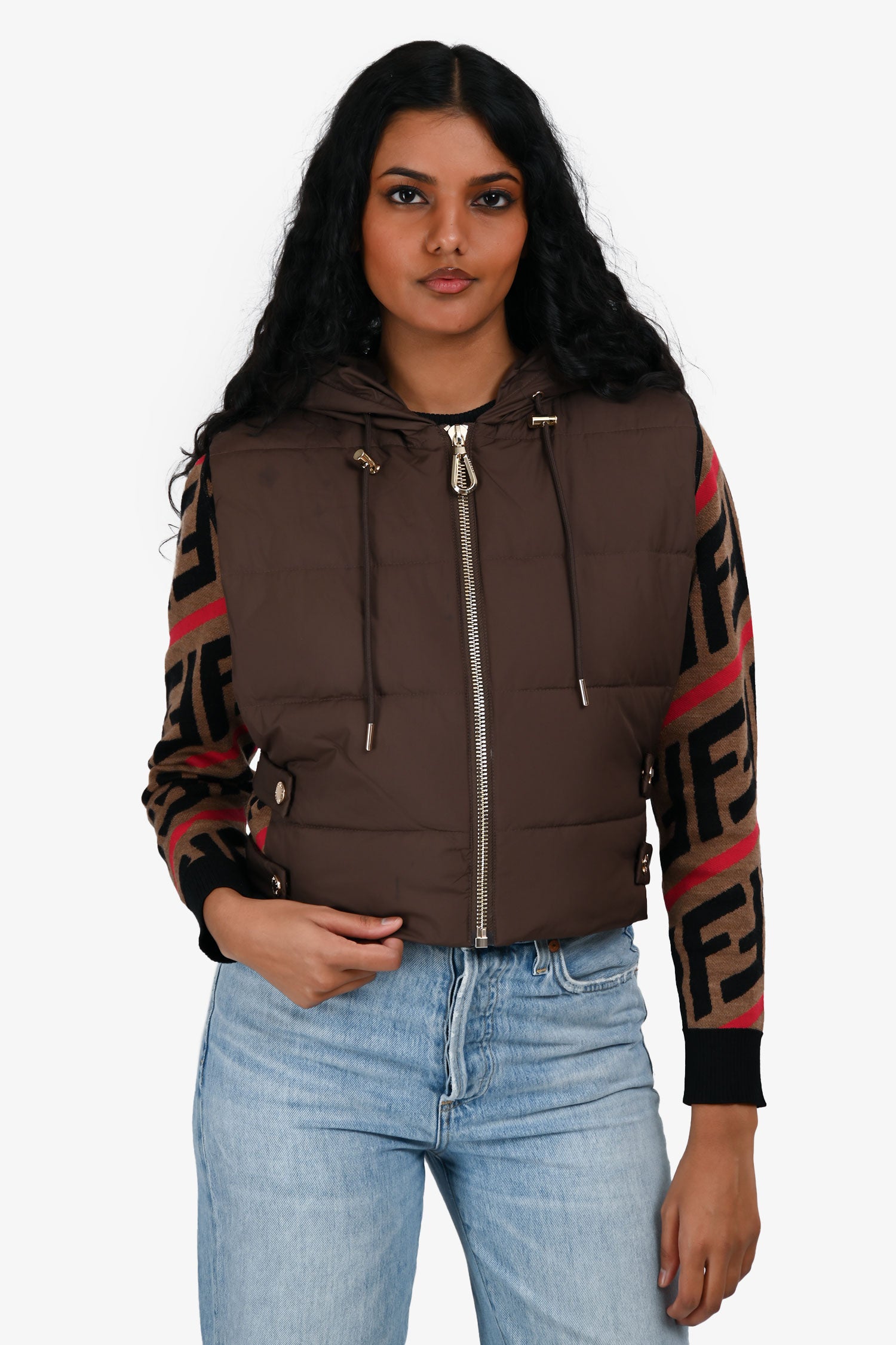 Refresh availabilitySandro Brown Puff Zip Cropped Vest. Slip-on. Front zip closure. Drawstring hood. Side straps with snap closures. Unlined. Gold-tone hardware. Tonal stitching.