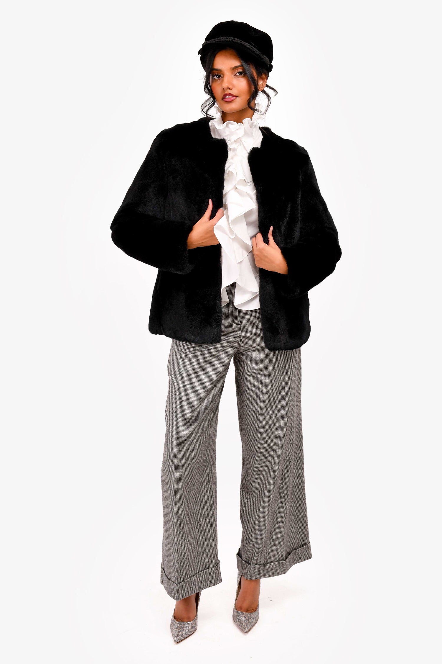 Refresh availabilitySandro Brown Tweed High Waisted Wide Leg Pants. Fly hook button closure with zipper. Two front pockets. Tonal stitching.