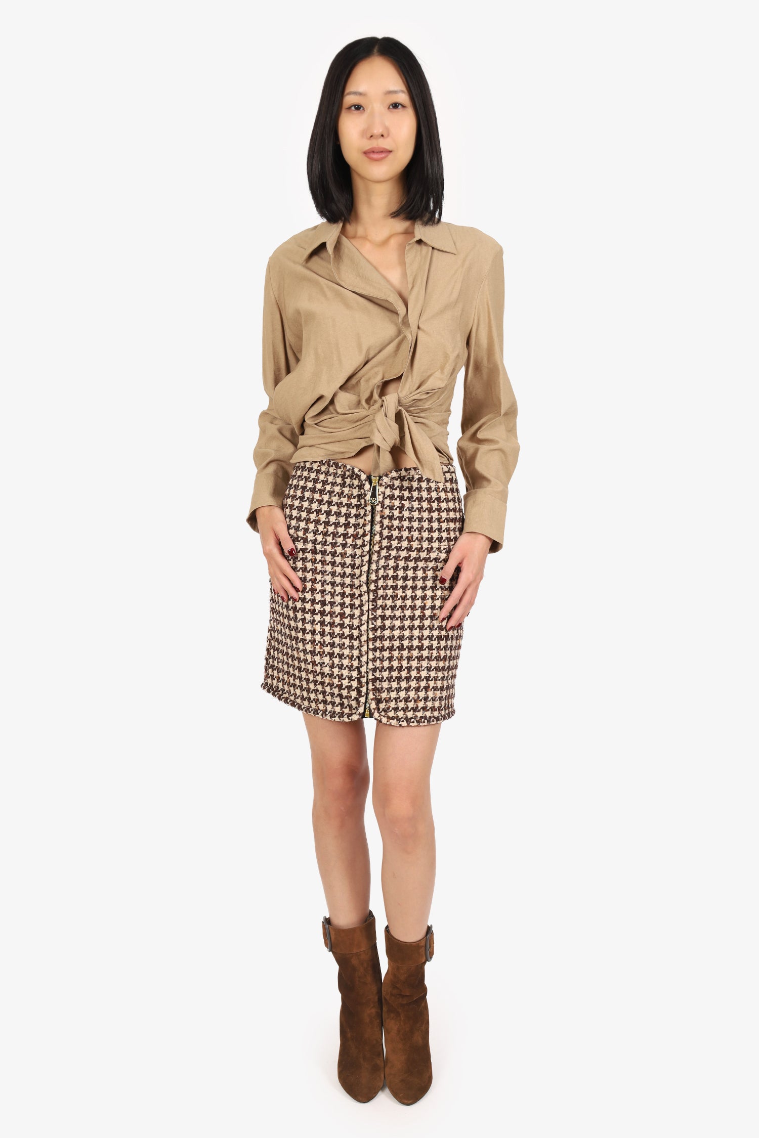 Sandro Brown Tweed Zip-up Midi Skirt Size 2