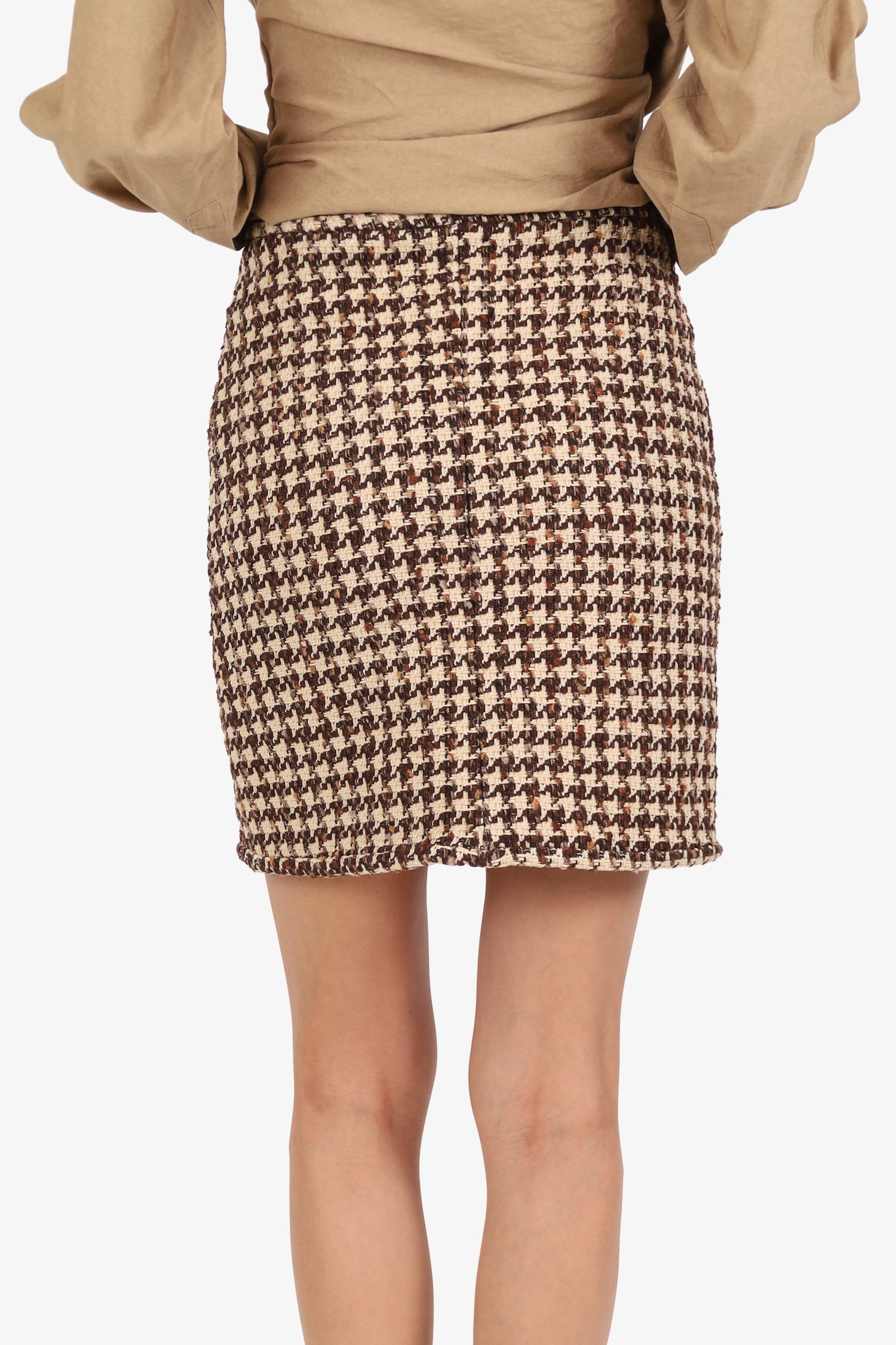 Refresh availabilitySandro Brown Tweed Zip-up Midi Skirt. Slip-on. Side zip closure. Lined interior. Tonal stitching.