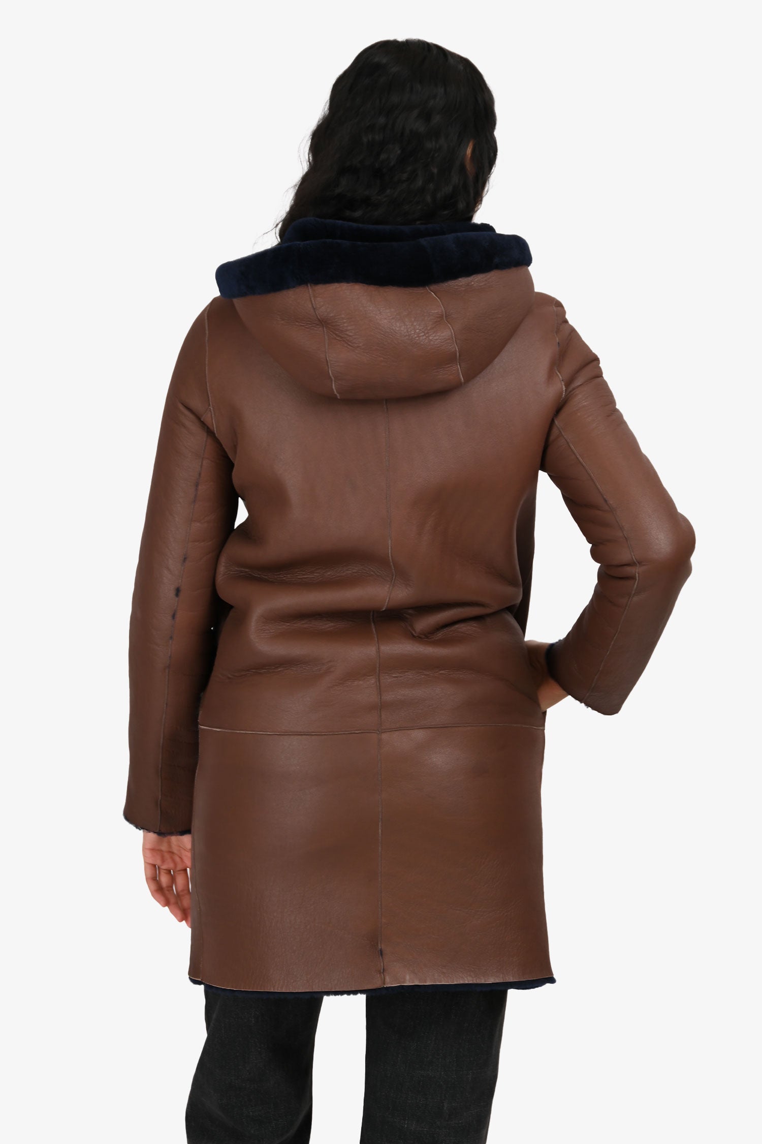 Sandro Brown/Blue Leather 'Bala' Reversible Shearling Jacket Size 1