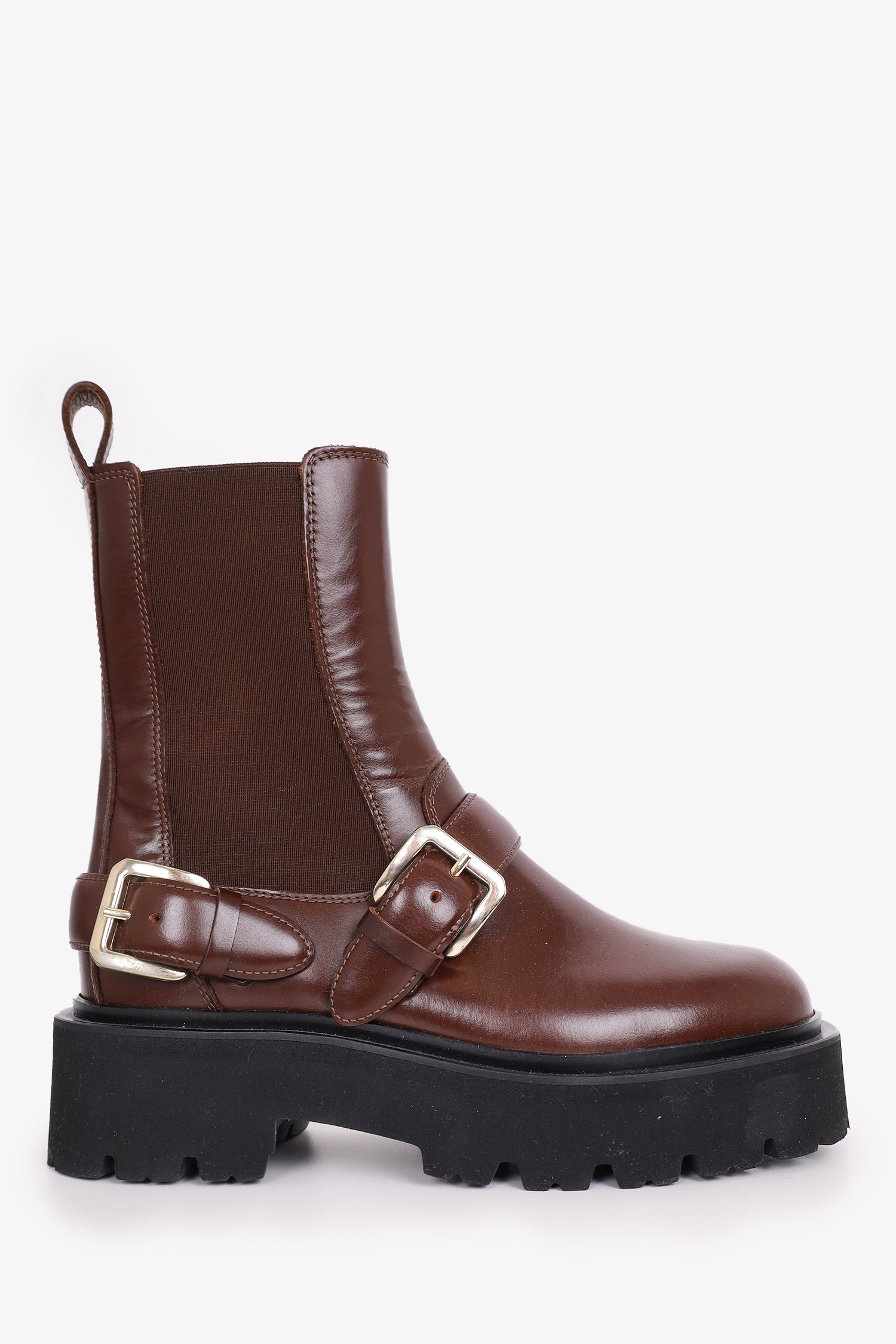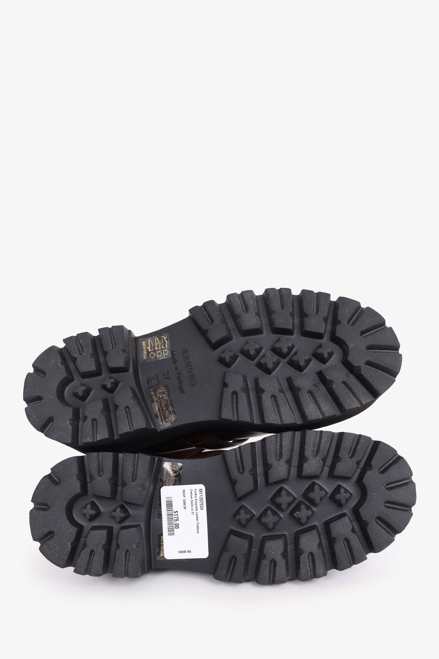 Refresh availabilitySandro Burgundy Leather Platform Chelsea Boots. Slip-on. Pull tab. Round-toe. Tonal stitching.