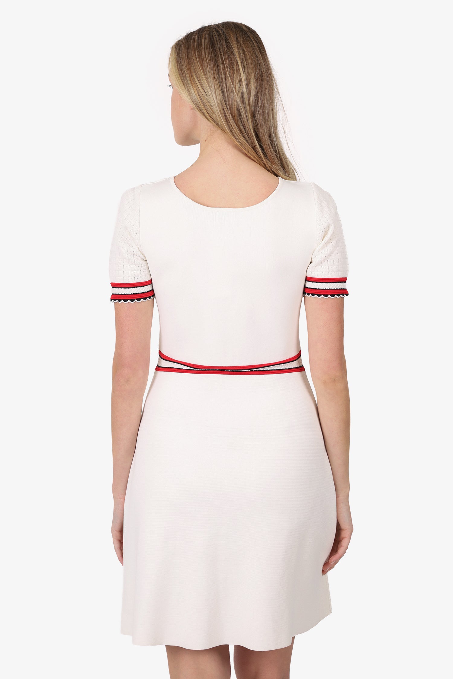 Sandro Cream Knit Striped Trim Short Dress Estimated Size S