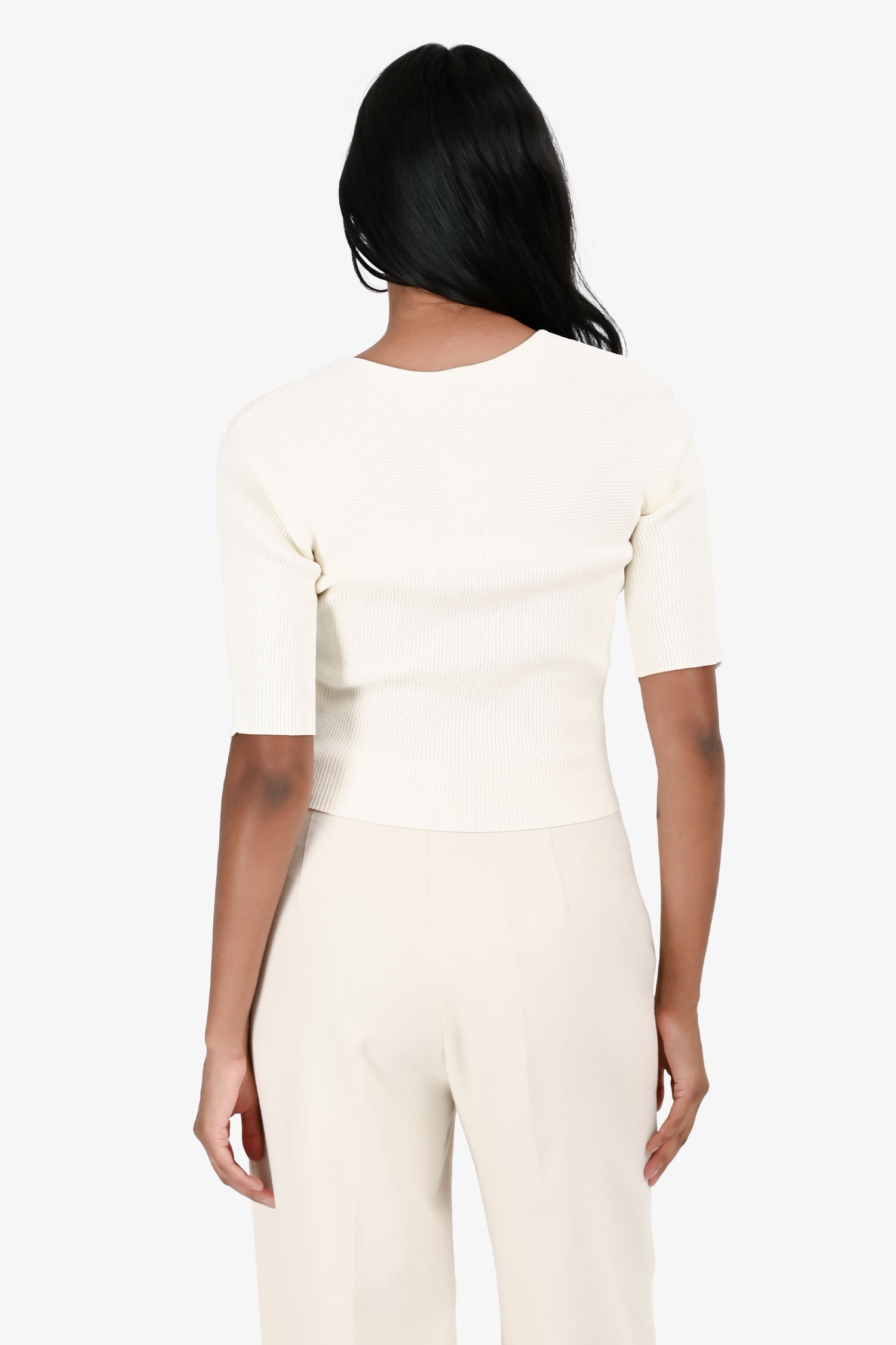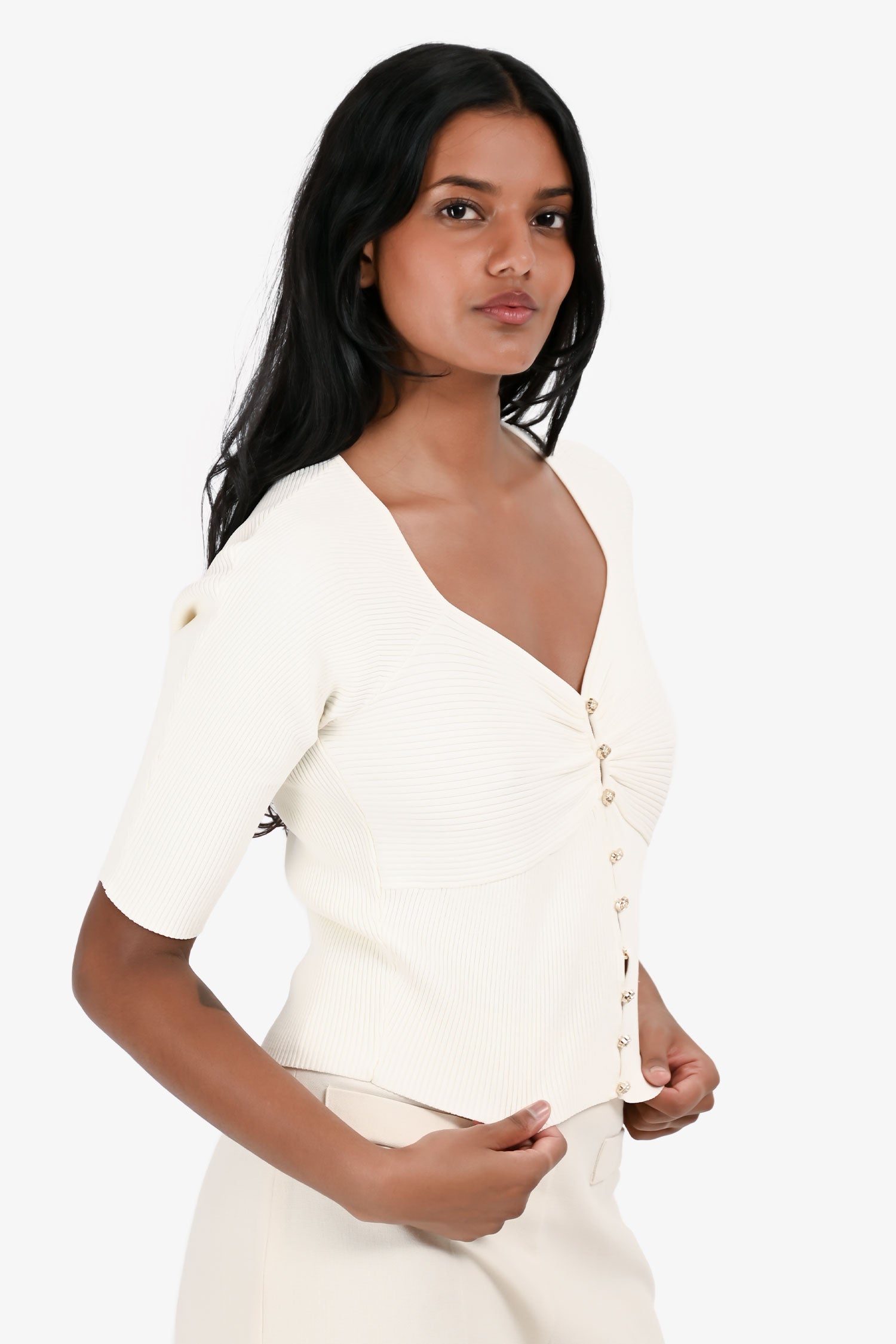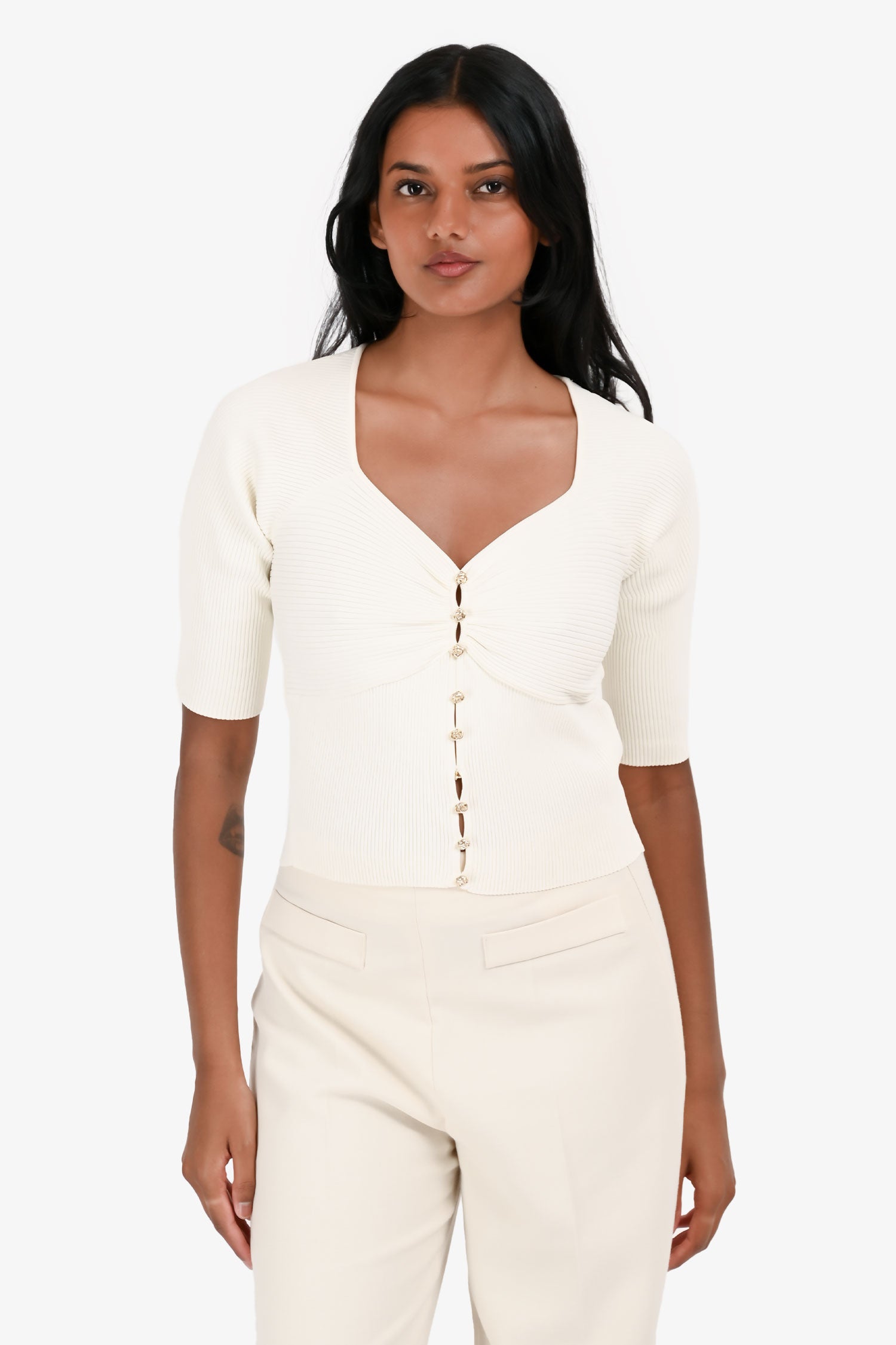 Refresh availabilitySandro Cream Ribbed Knit Bustier Top. Pull-on. Button detailing at the front. V-neck.