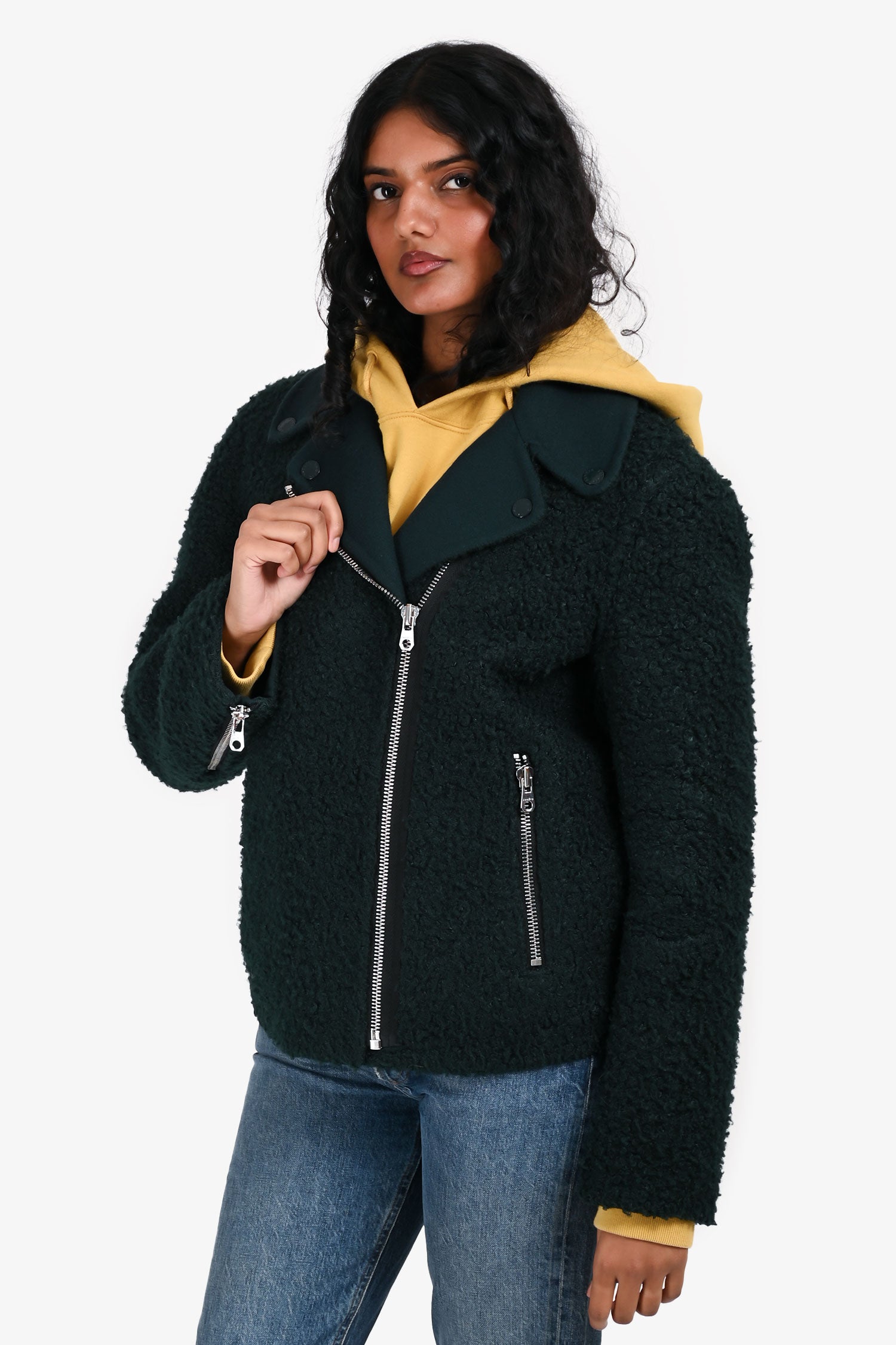 Refresh availabilitySandro Dark Green Teddy Jacket. Front zip closure. Front zip pockets. Unlined.