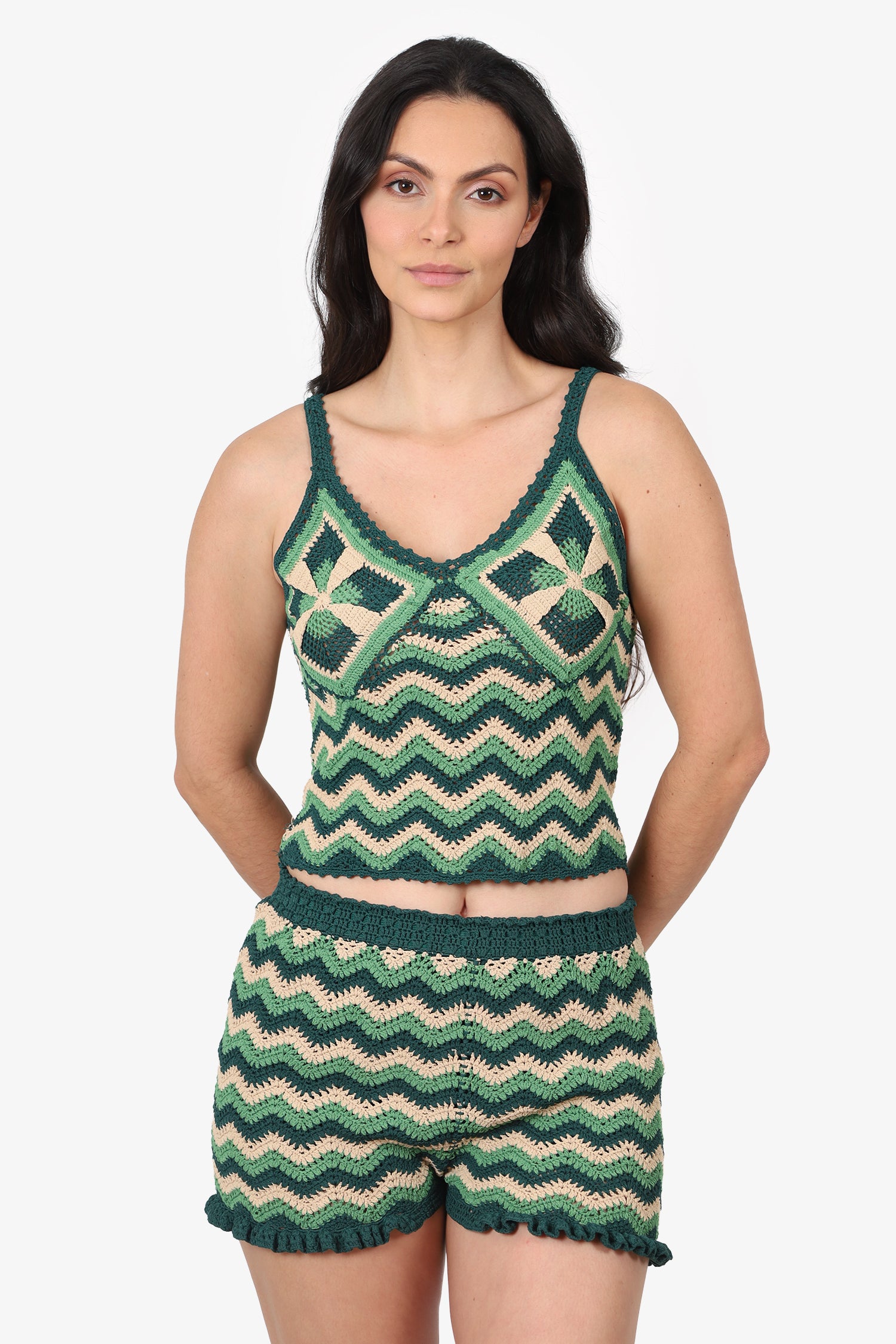 Refresh availabilitySandro Green Mario Striped Crochet-knit Top + Shorts Set. Top; Pull on. V-neckline. Tonal stitching.