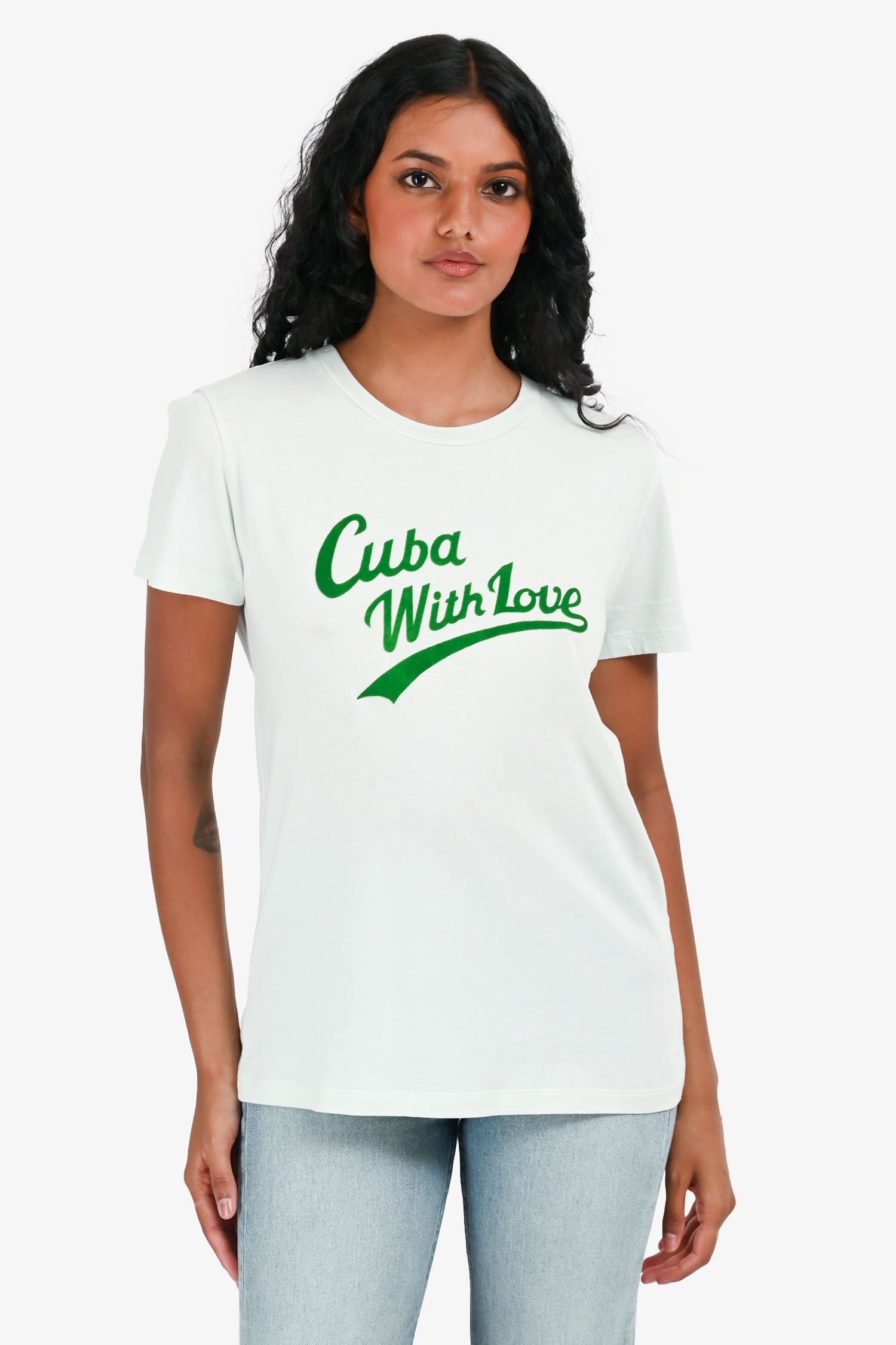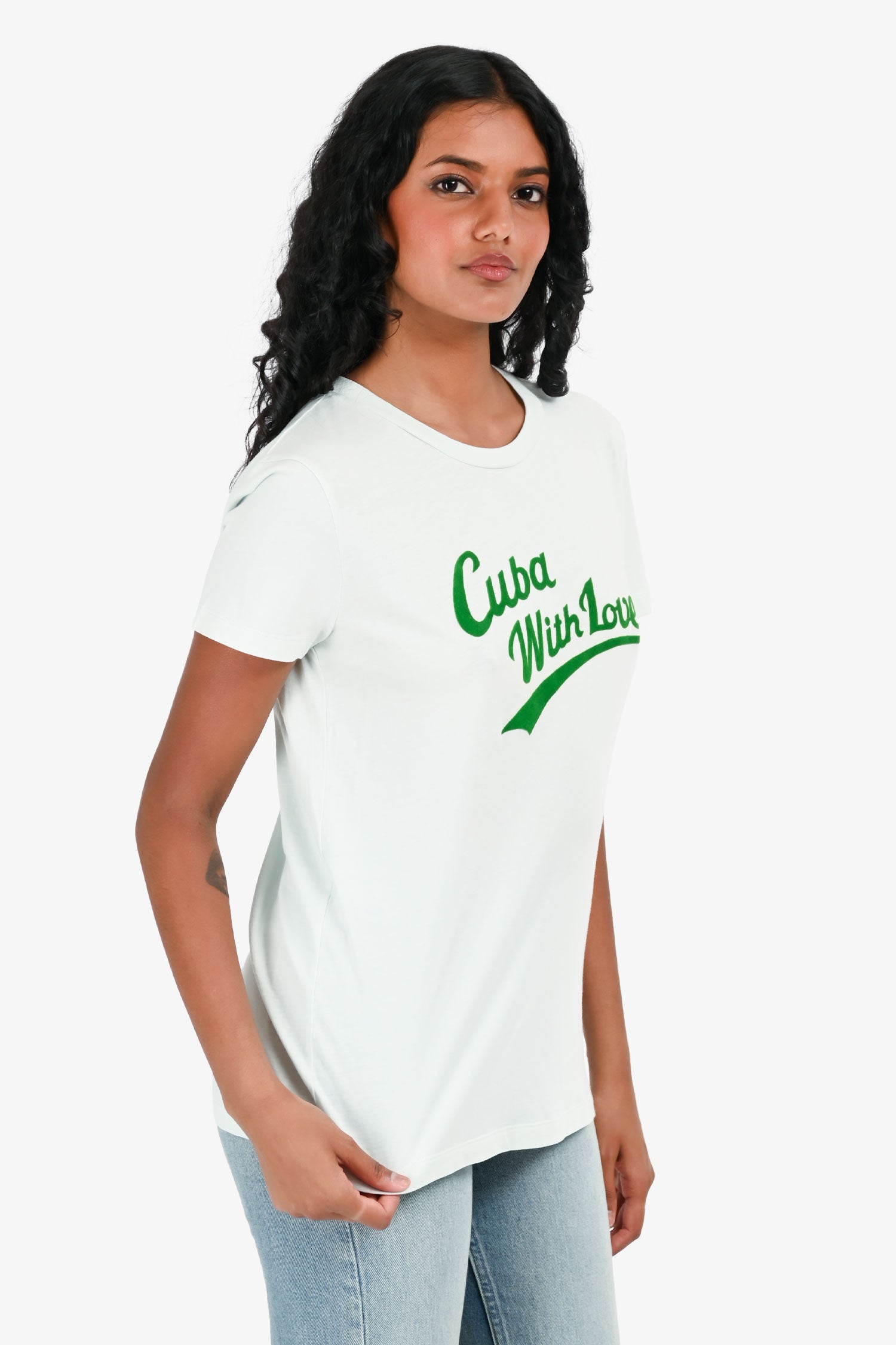 Refresh availabilitySandro Light Green 'Cuba With Love' Short Sleeves T-Shirts. Crew neckline. Short sleeves. Graphic text print on front. Straight hem. Tonal stitching.