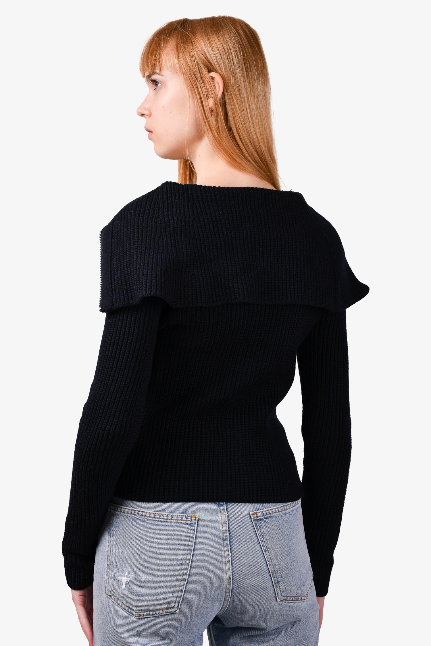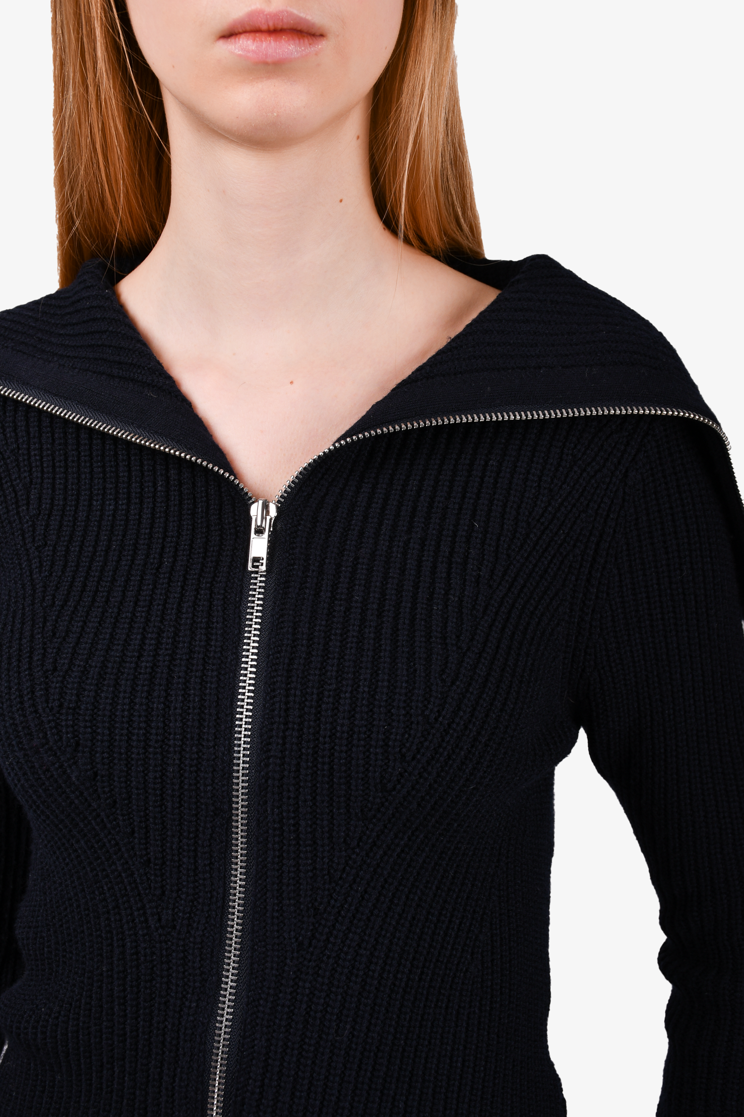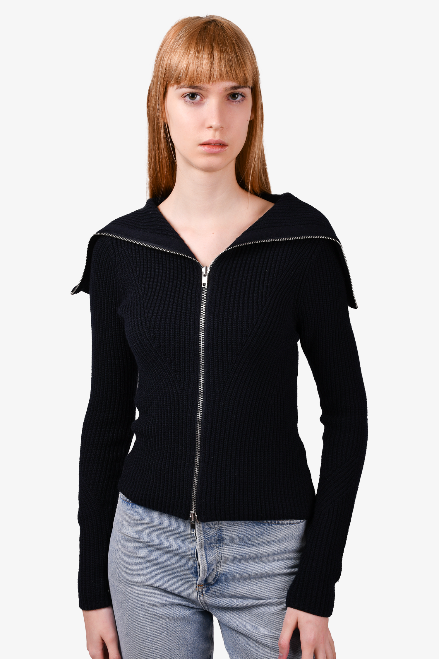 Refresh availabilitySandro Navy Blue Collar Zip Up Sweater. Zip up closure. Unlined.