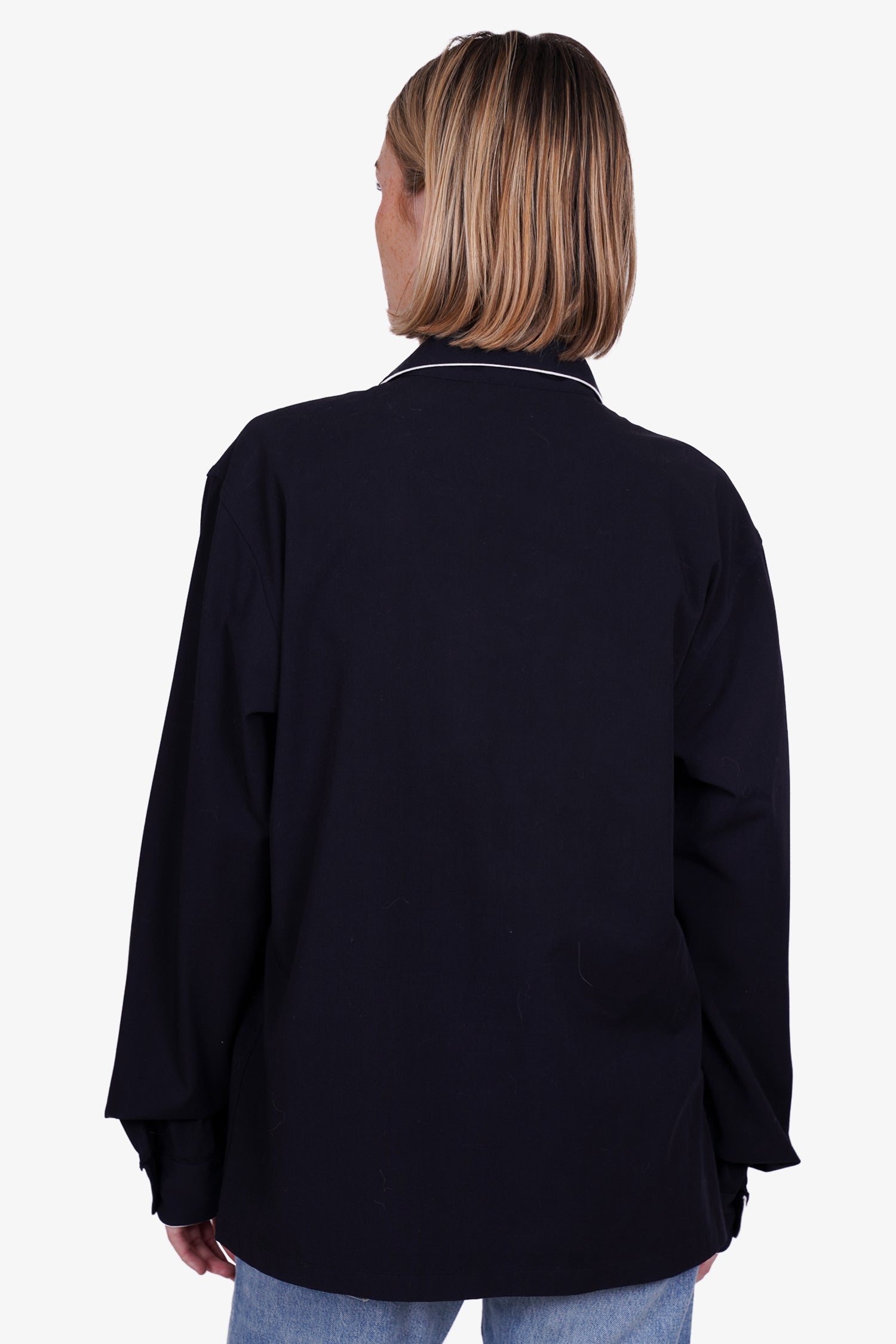 Refresh availabilitySandro Navy Button Up Long-sleeve Shirt. Front button-up closure. Unlined. Silver-tone hardware. Tonal stitching.