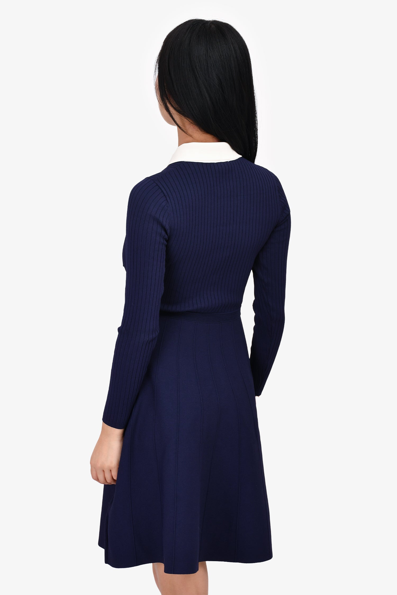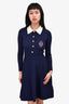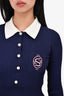 Sandro Navy Knit Collared Pearl Button 'S' Logo Dress Size 34