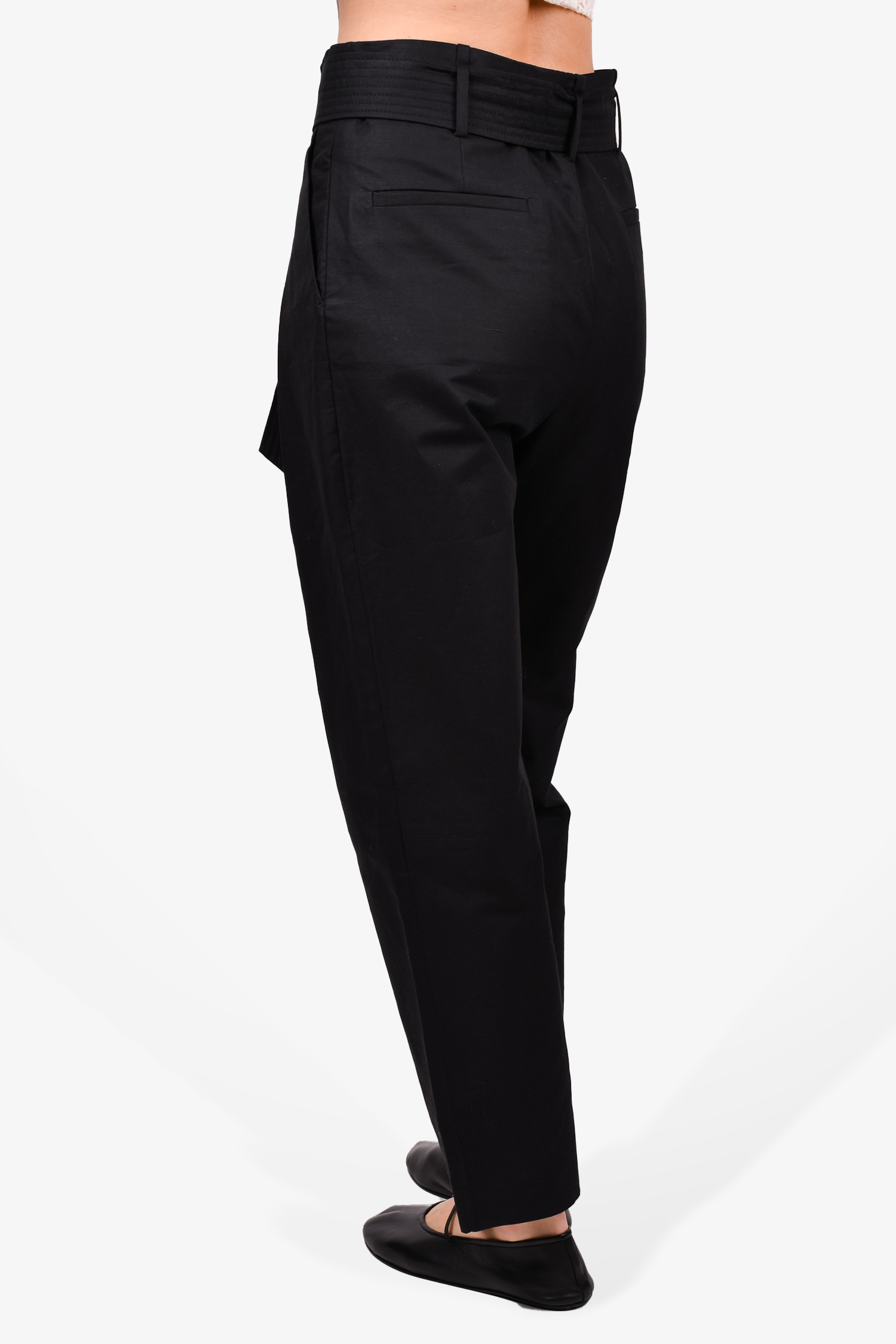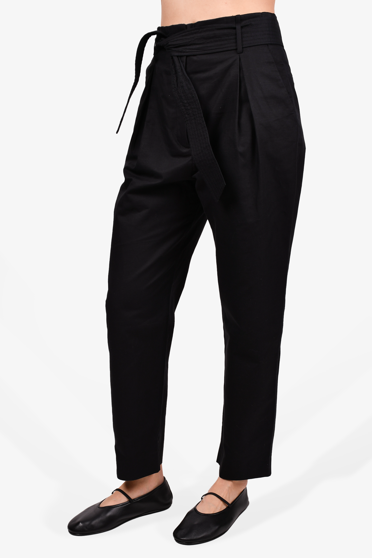 Refresh availabilitySandro Navy Trousers. Front zip closure with single button. Tie waist. Tonal stitching.
