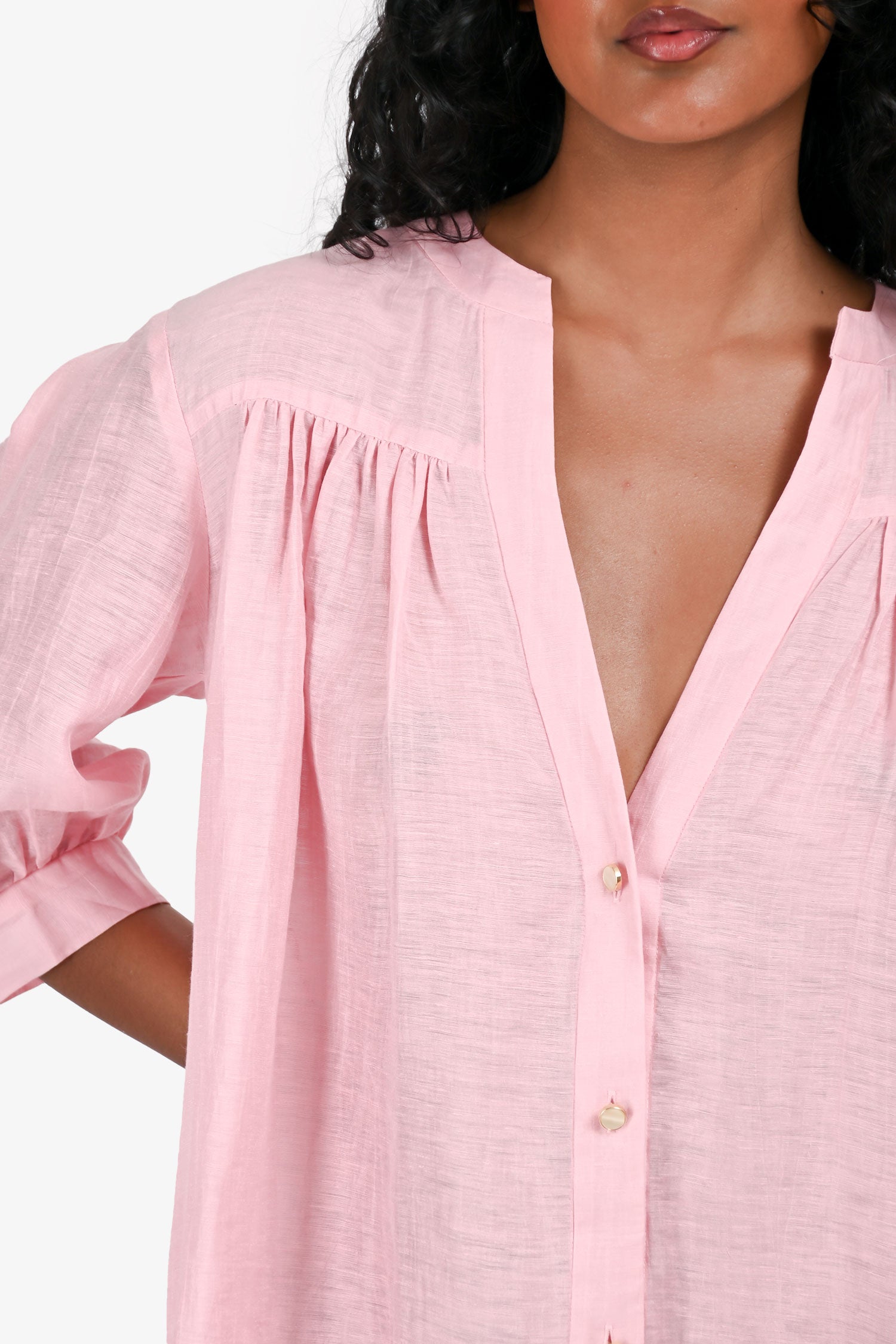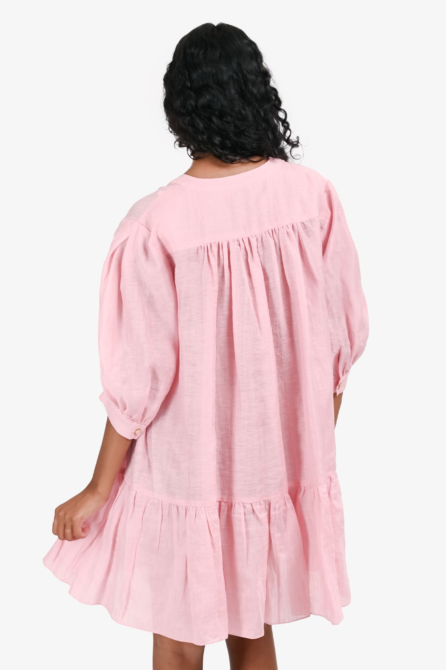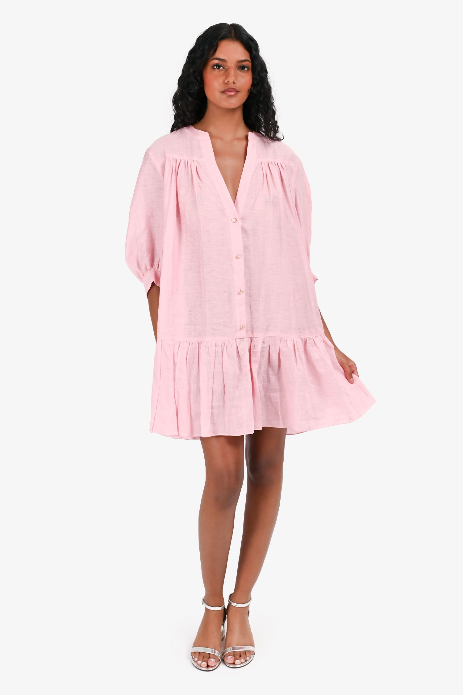 Refresh availabilitySandro Pink Puff Sleeve Mini Dress. Gold-tone hardware. Buttoned bodice and cuffs. Unlined. Tonal stitching.