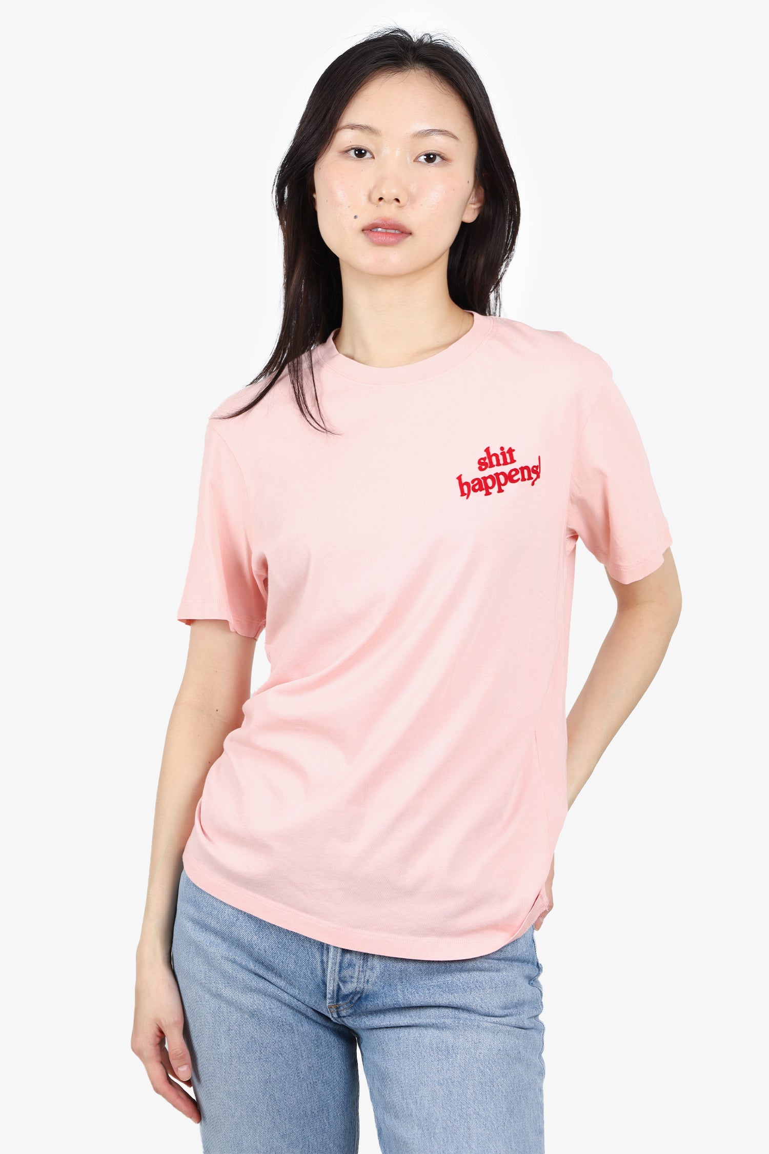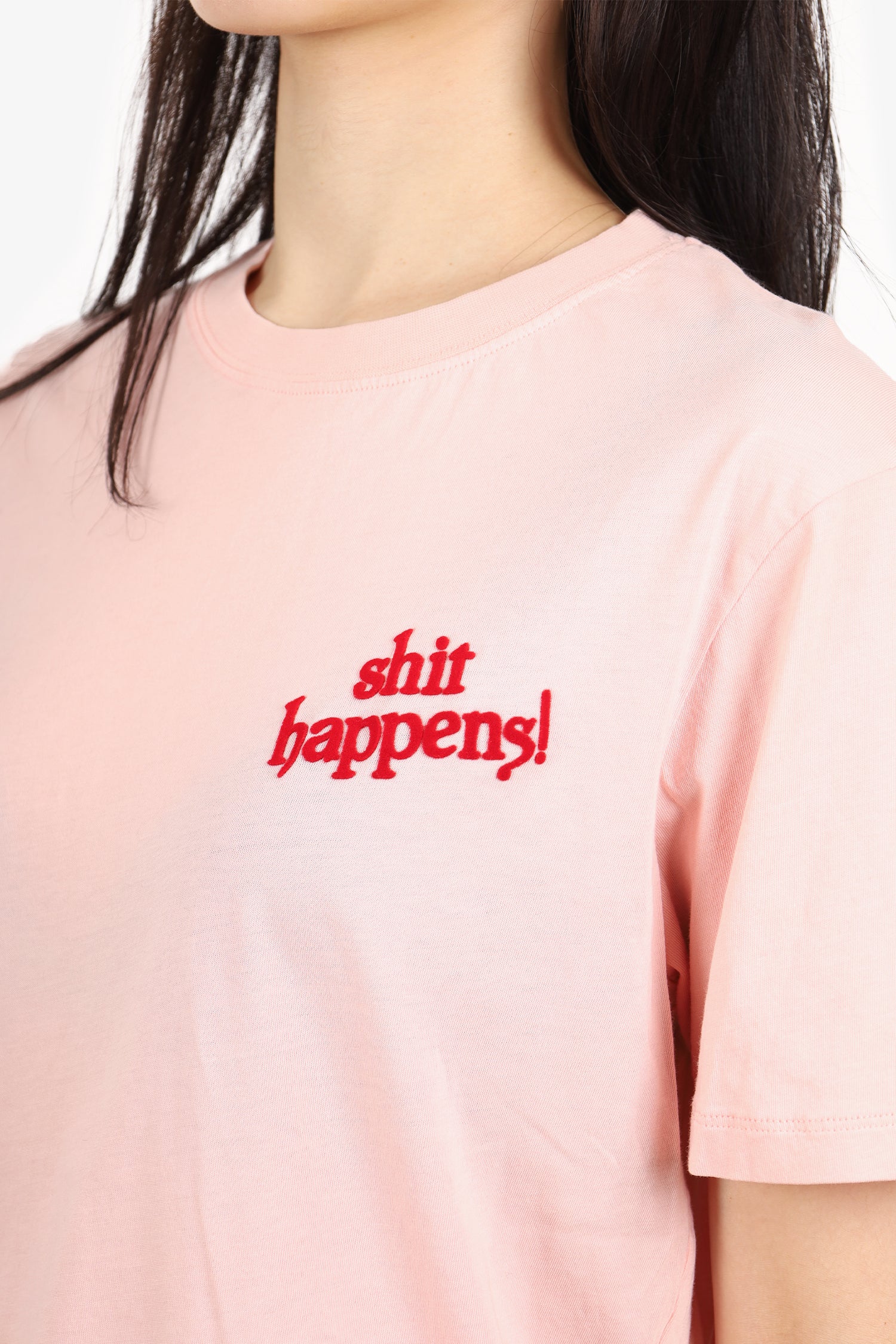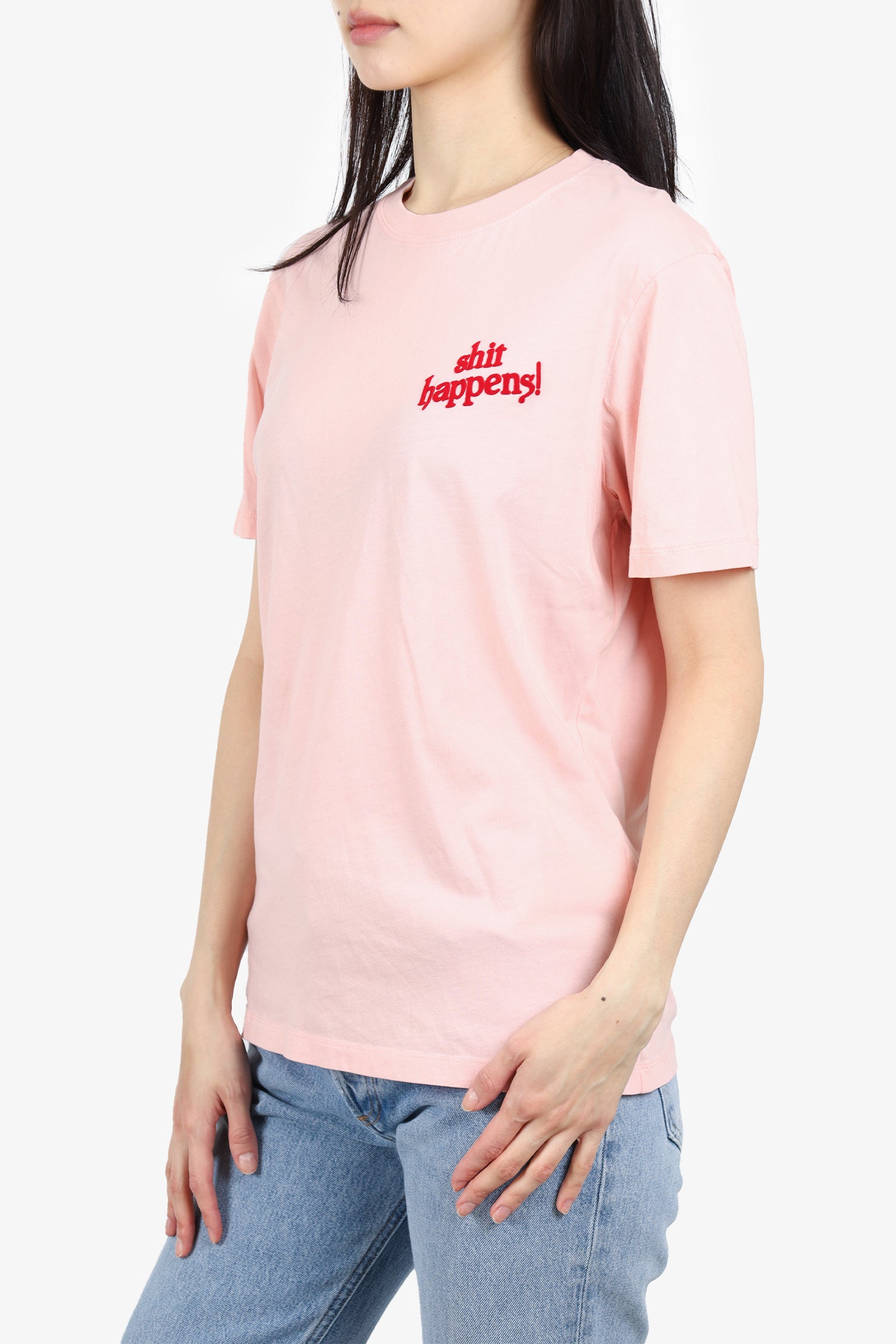 Refresh availabilitySandro Pink/Red d 'Shit Happens!' T-Shirt. Round neckline. Tonal stitching.