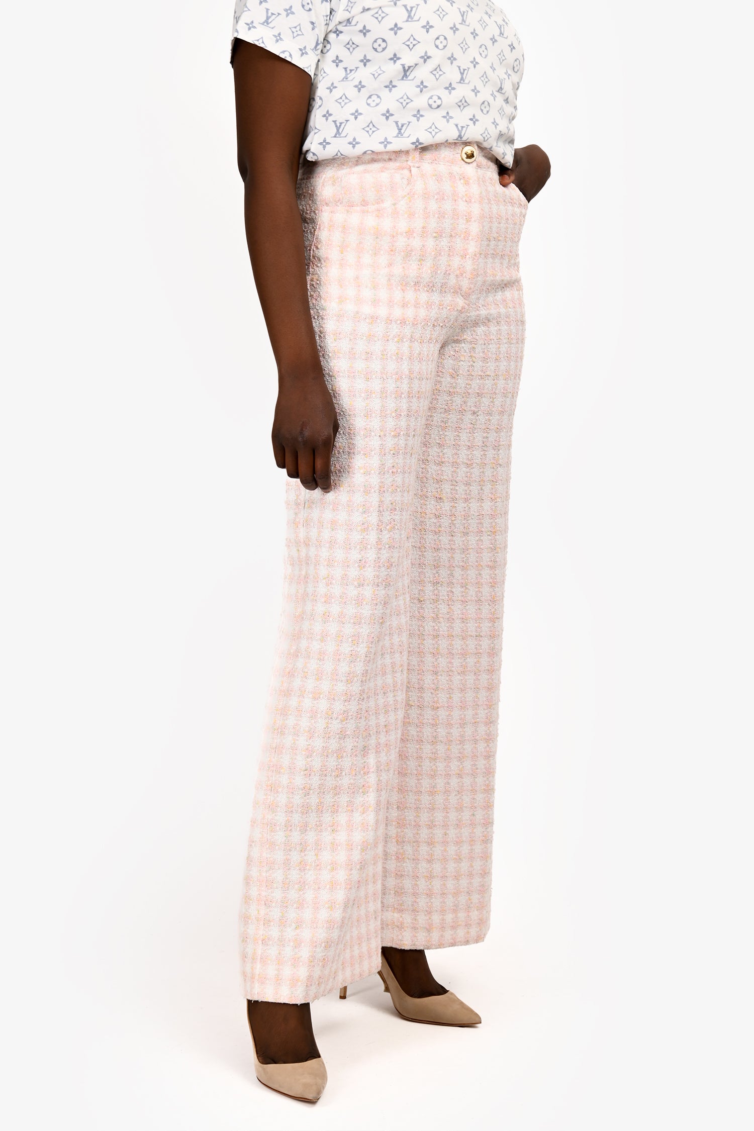 Sandro Pink/White Tweed Sequin Wide Leg Pants Size 40
