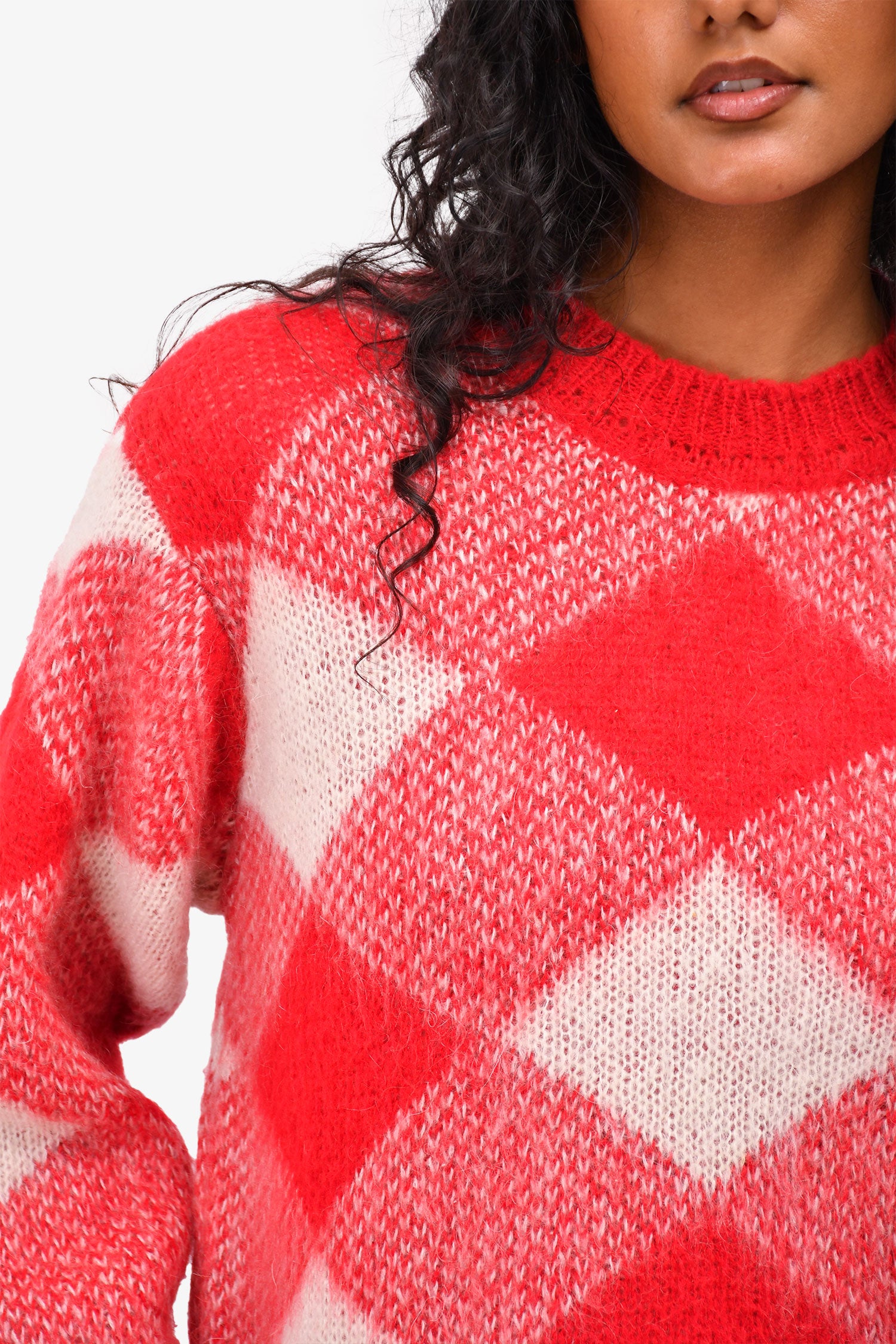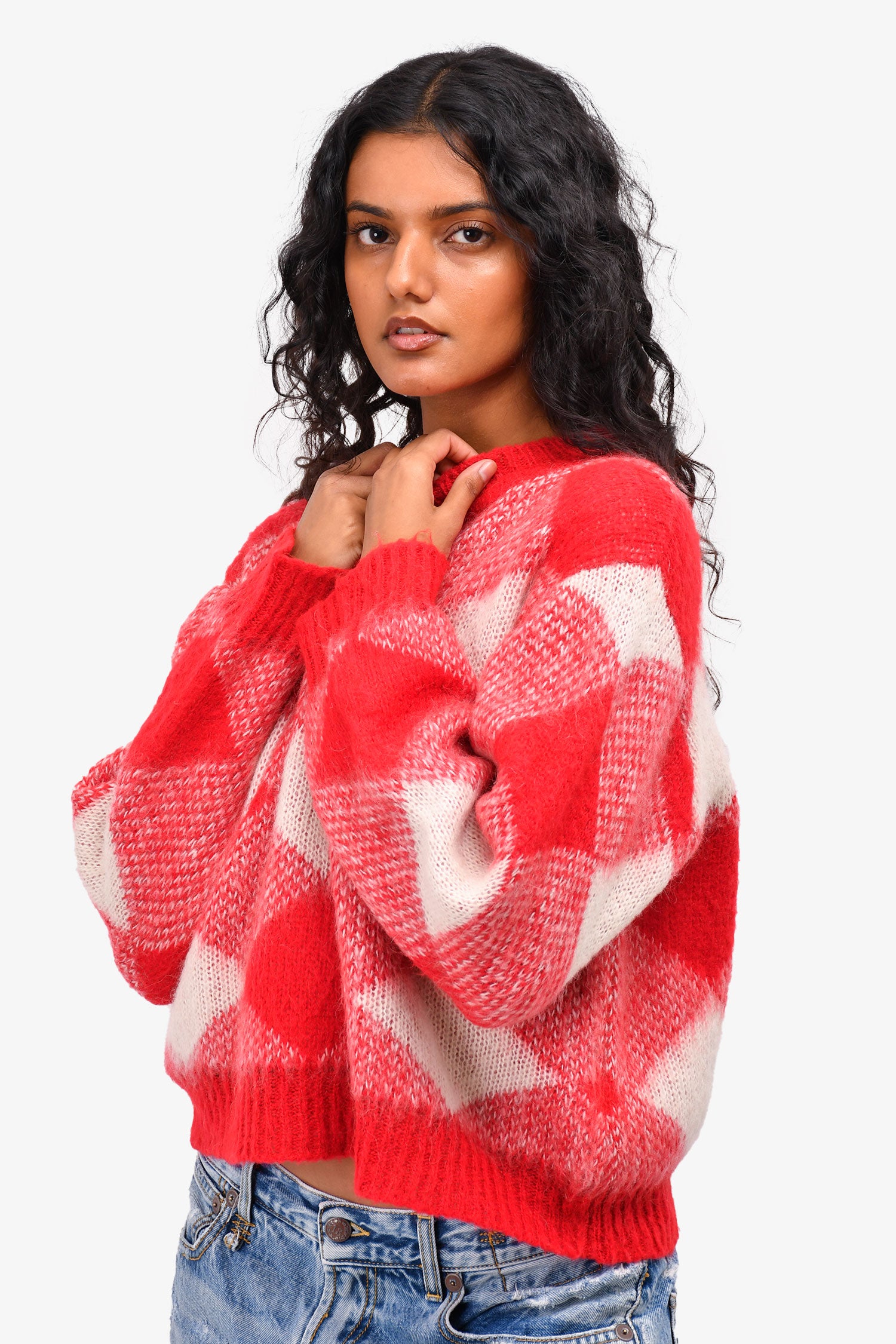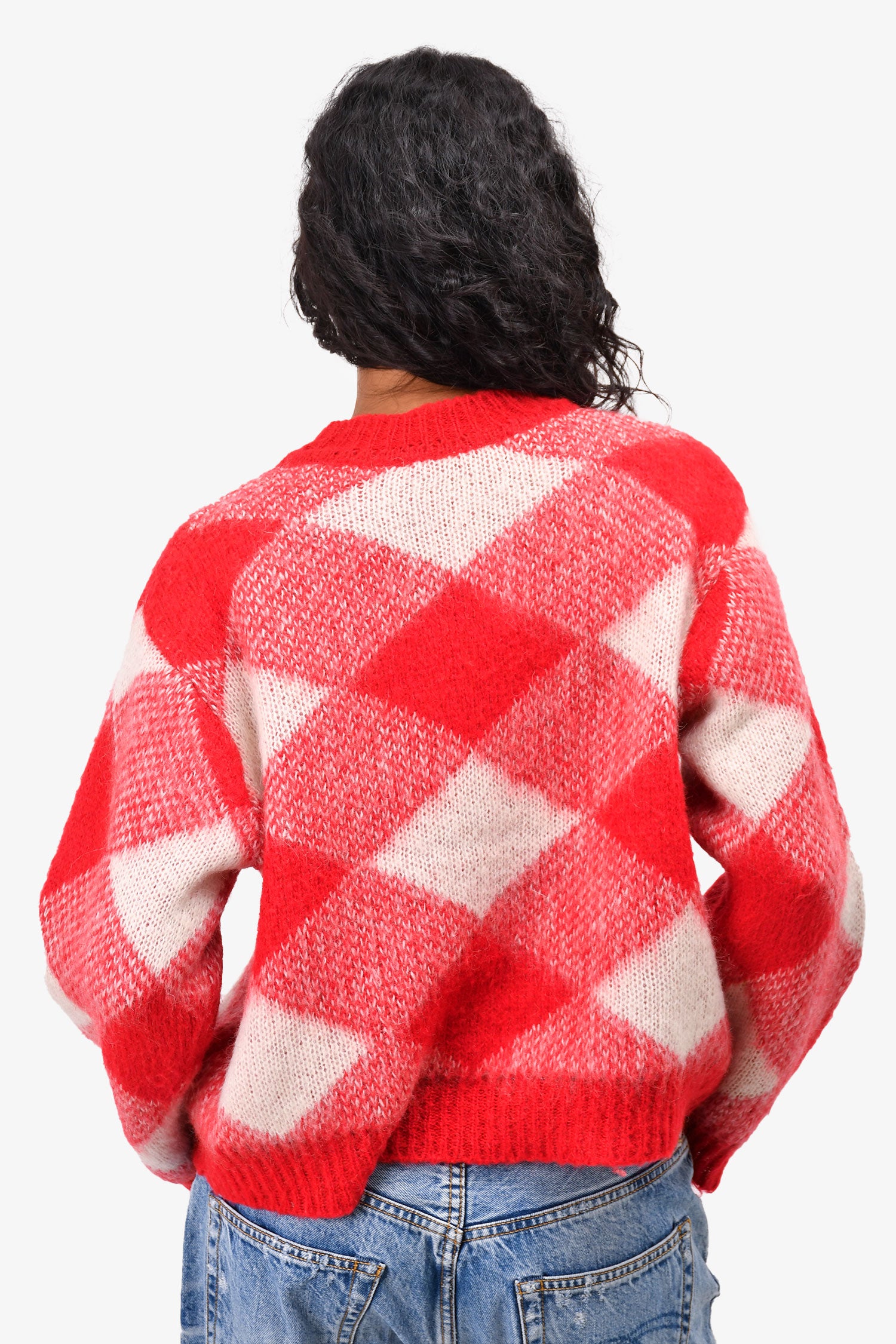 Sandro Red Mohair Sweater. Round neck. Pull-on. Ribbed neck, cuffs and hem.