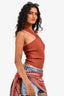 Sandro Rust Ribbed Criss Cross Cut Out Top Size 2