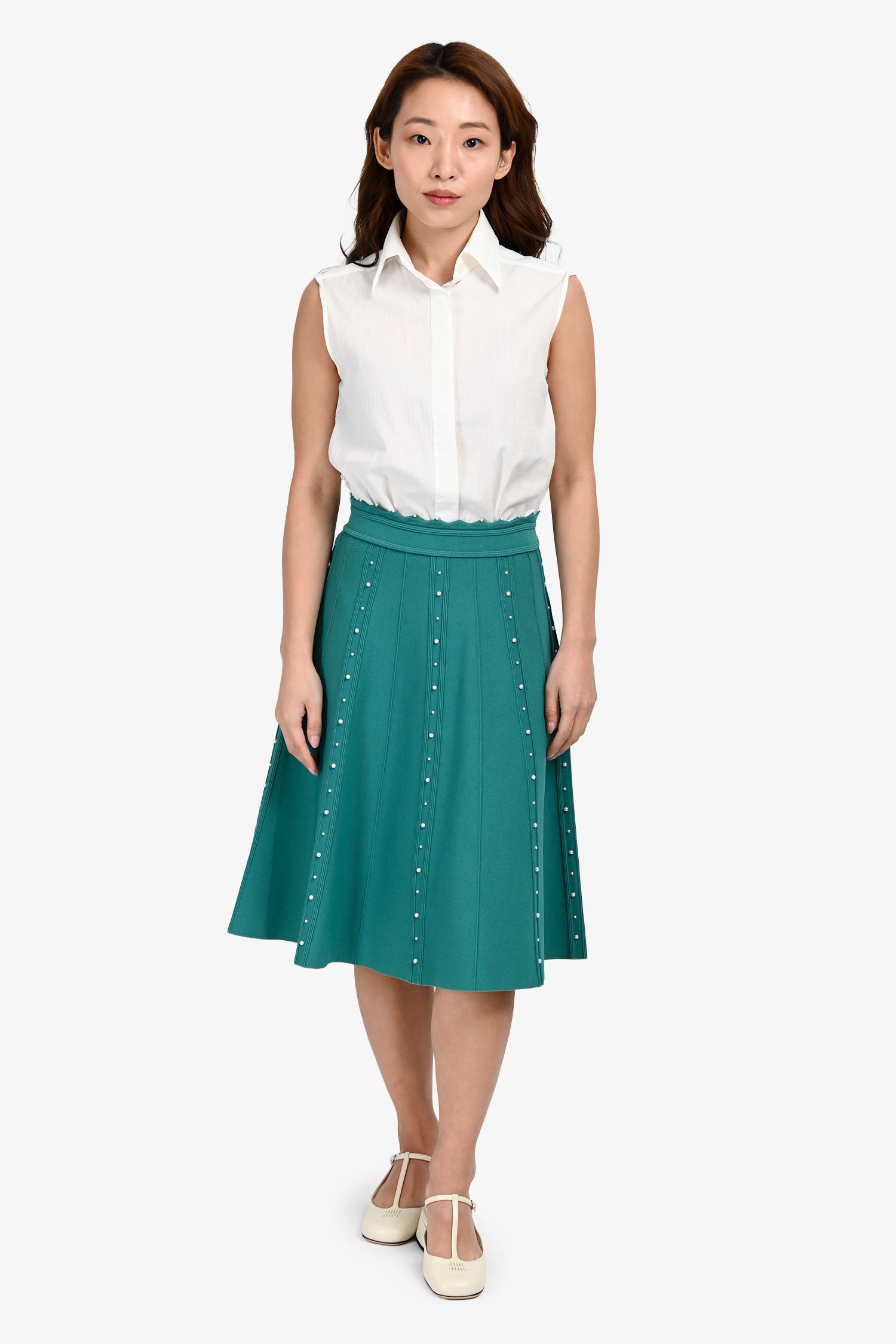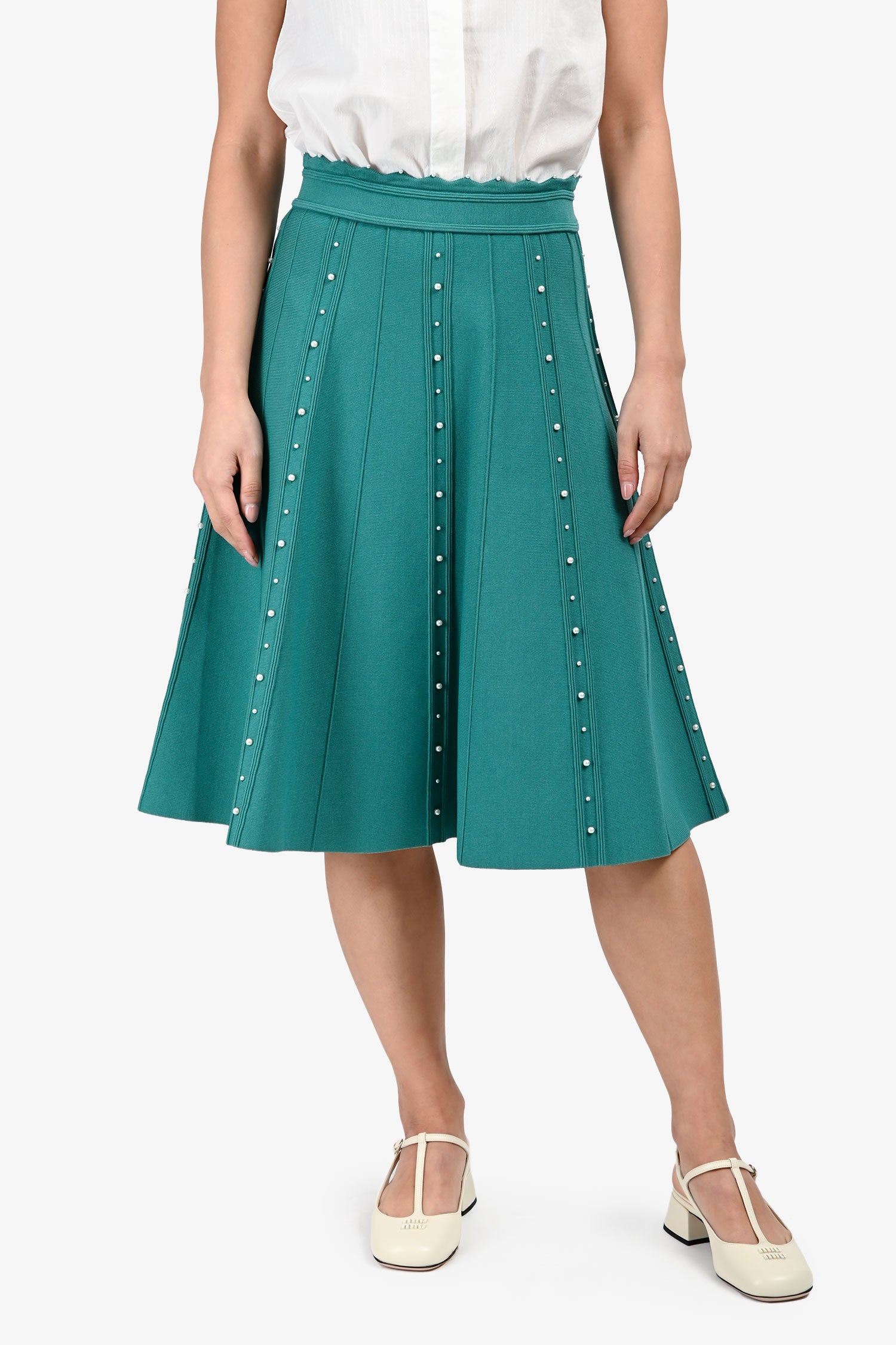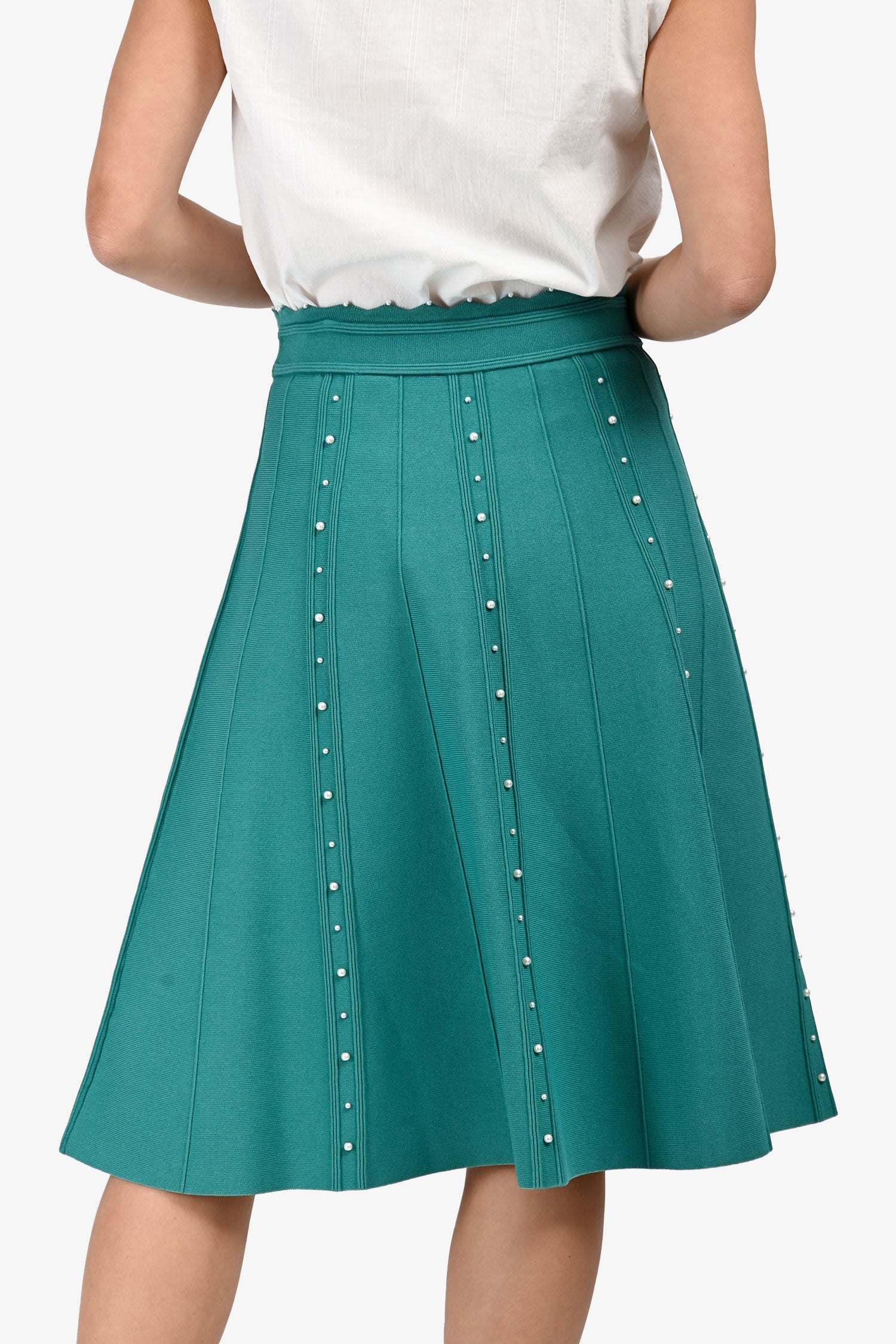 Refresh availabilitySandro Teal Faux Pearl Midi Skirt. Elasticized waistband. Tonal stitching.