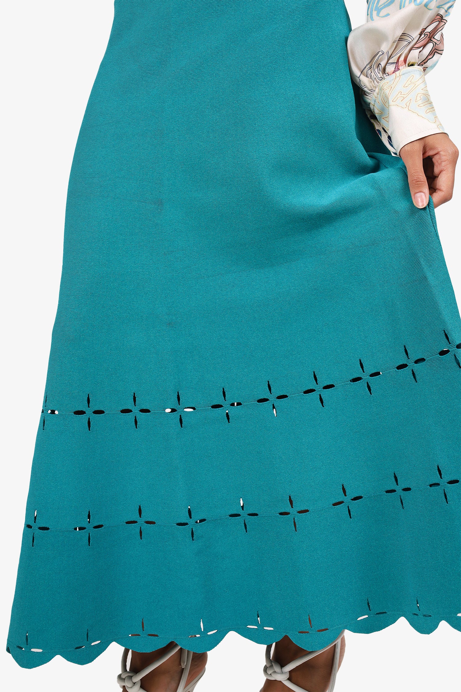 Sandro Teal Rosy Laser-cut Ponte Ribbed Midi Skirt Size 3