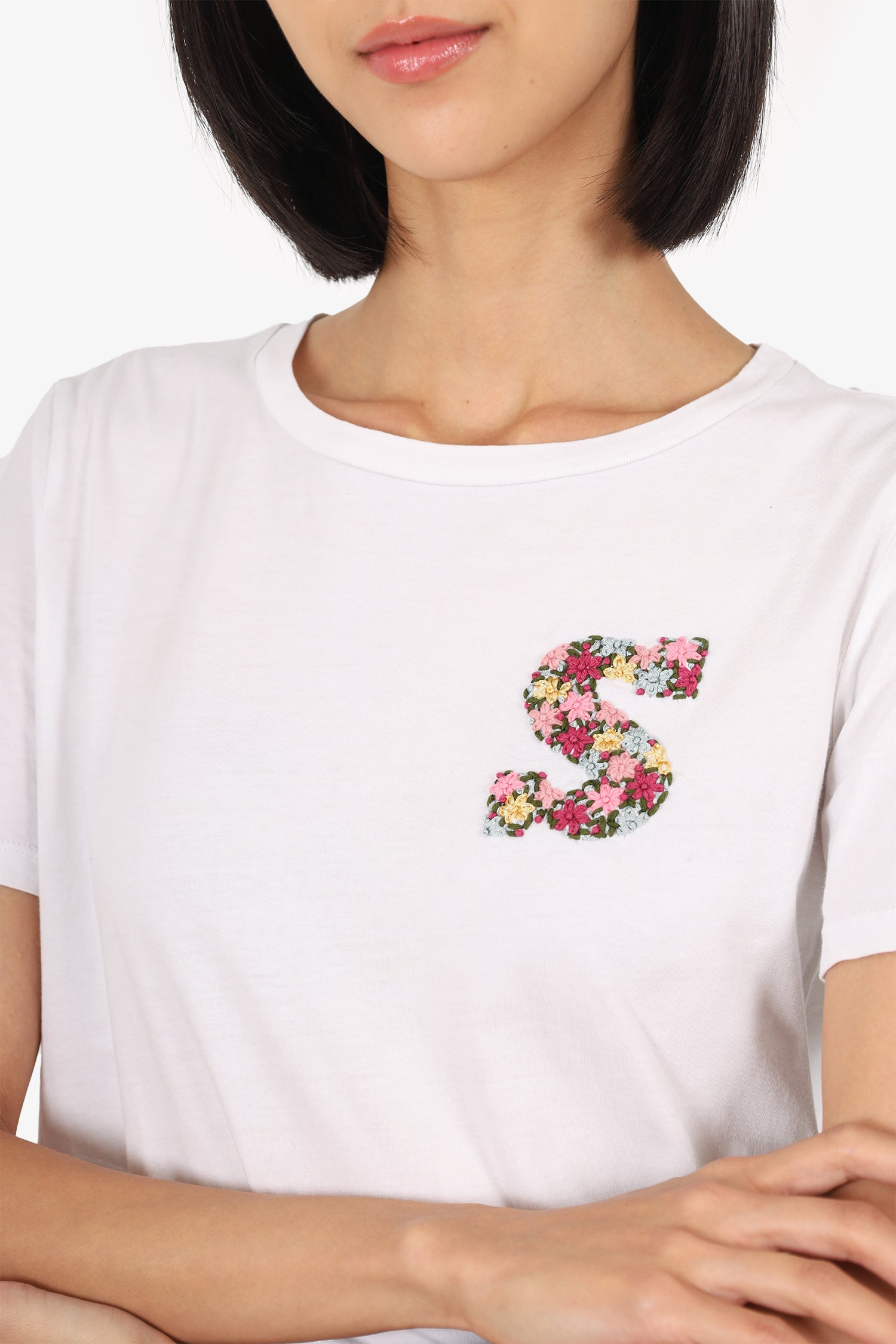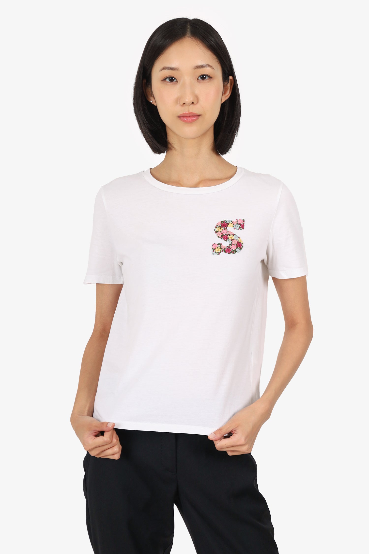 Refresh availabilitySandro White 'Floral S' T-Shirt. Round neckline. Tonal stitching.