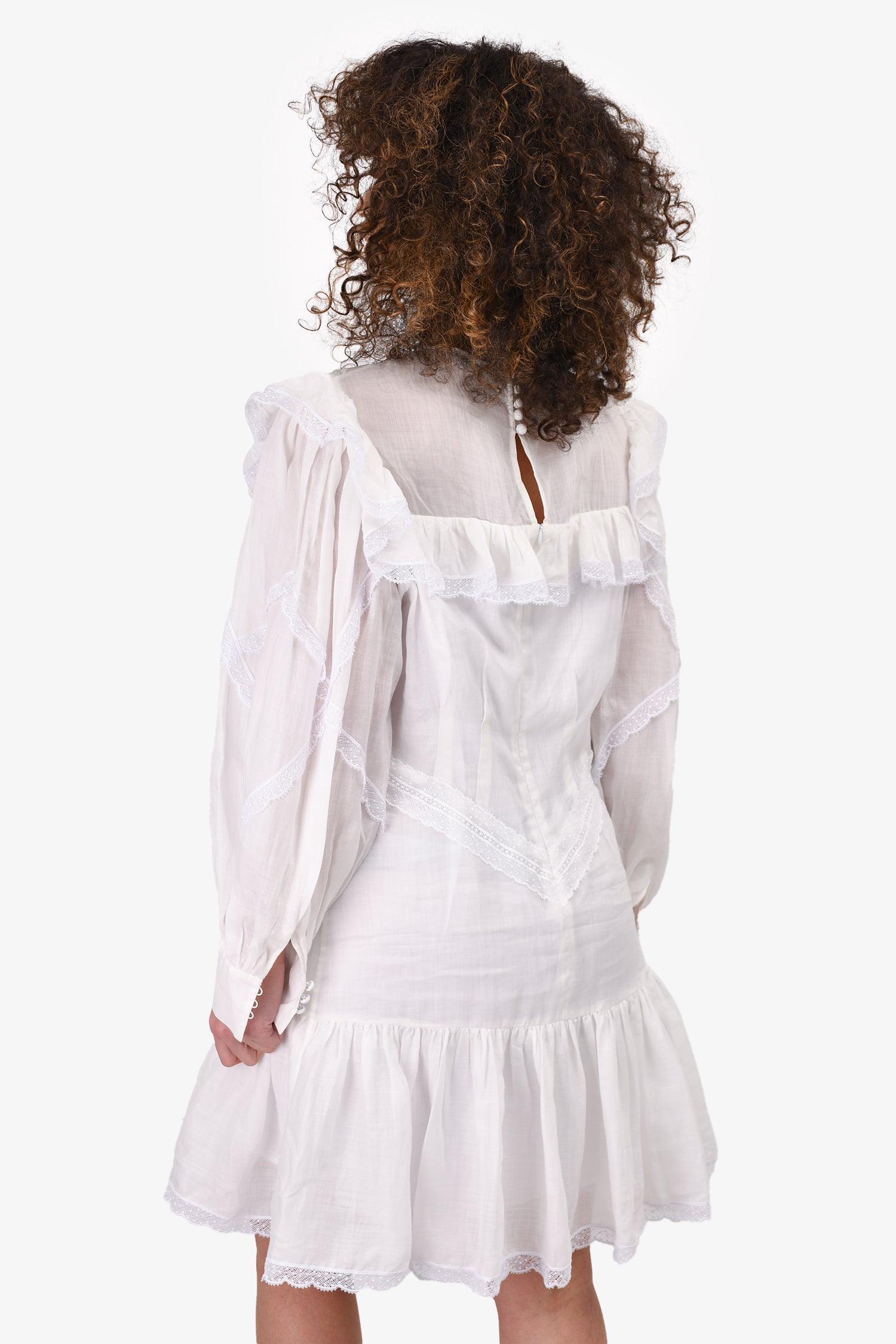 Refresh availabilitySandro White Lace Trim Dress. Rear zip closure. Back-of-neck button closures. Lined.