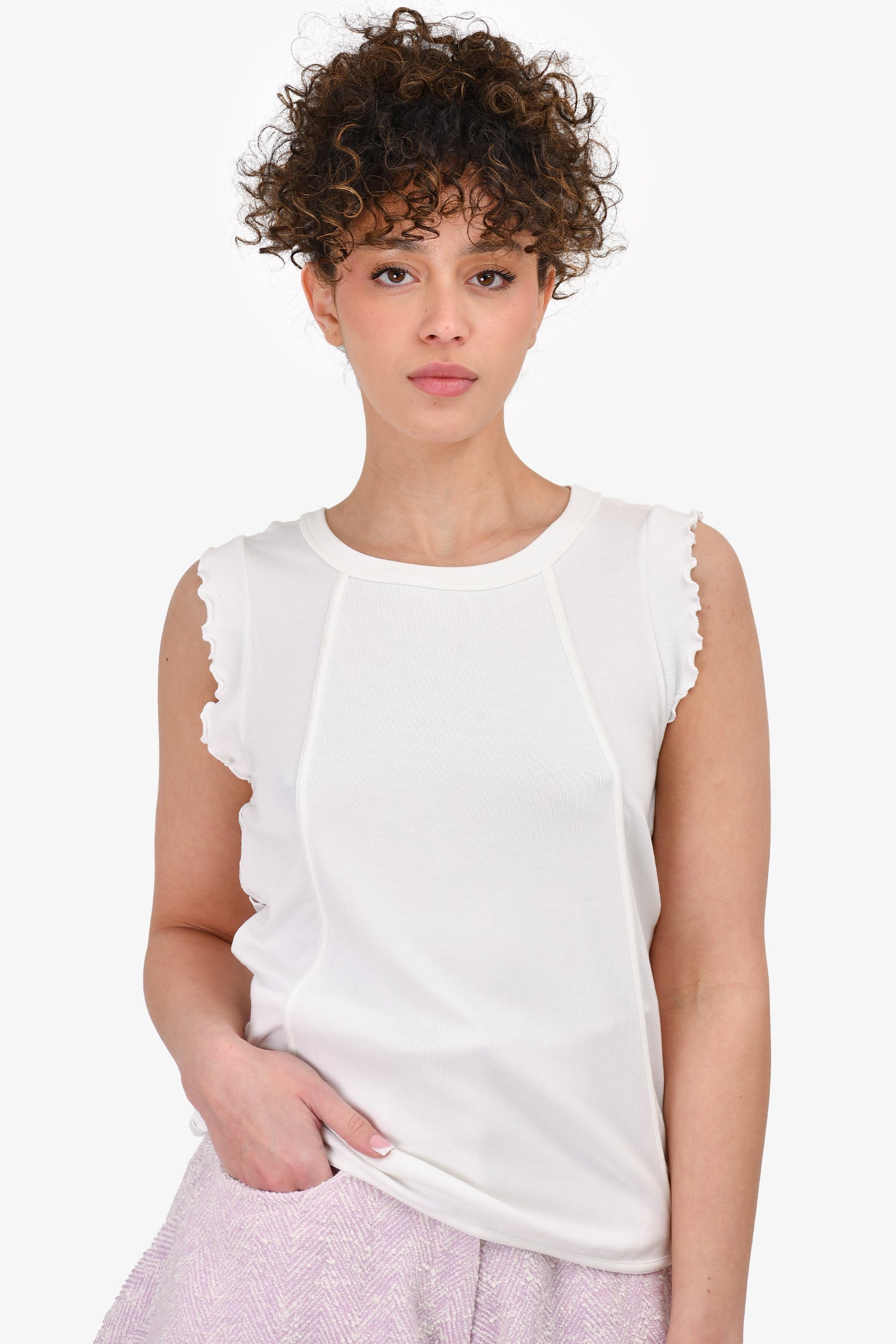 Refresh availabilitySandro White Sleeveless Crochet Back Top. Pull-on. Round neck.