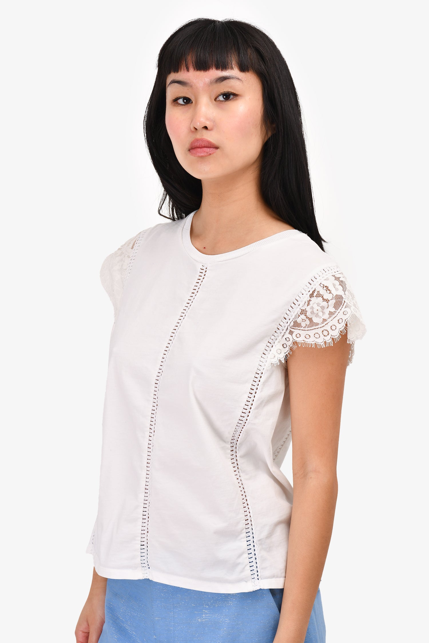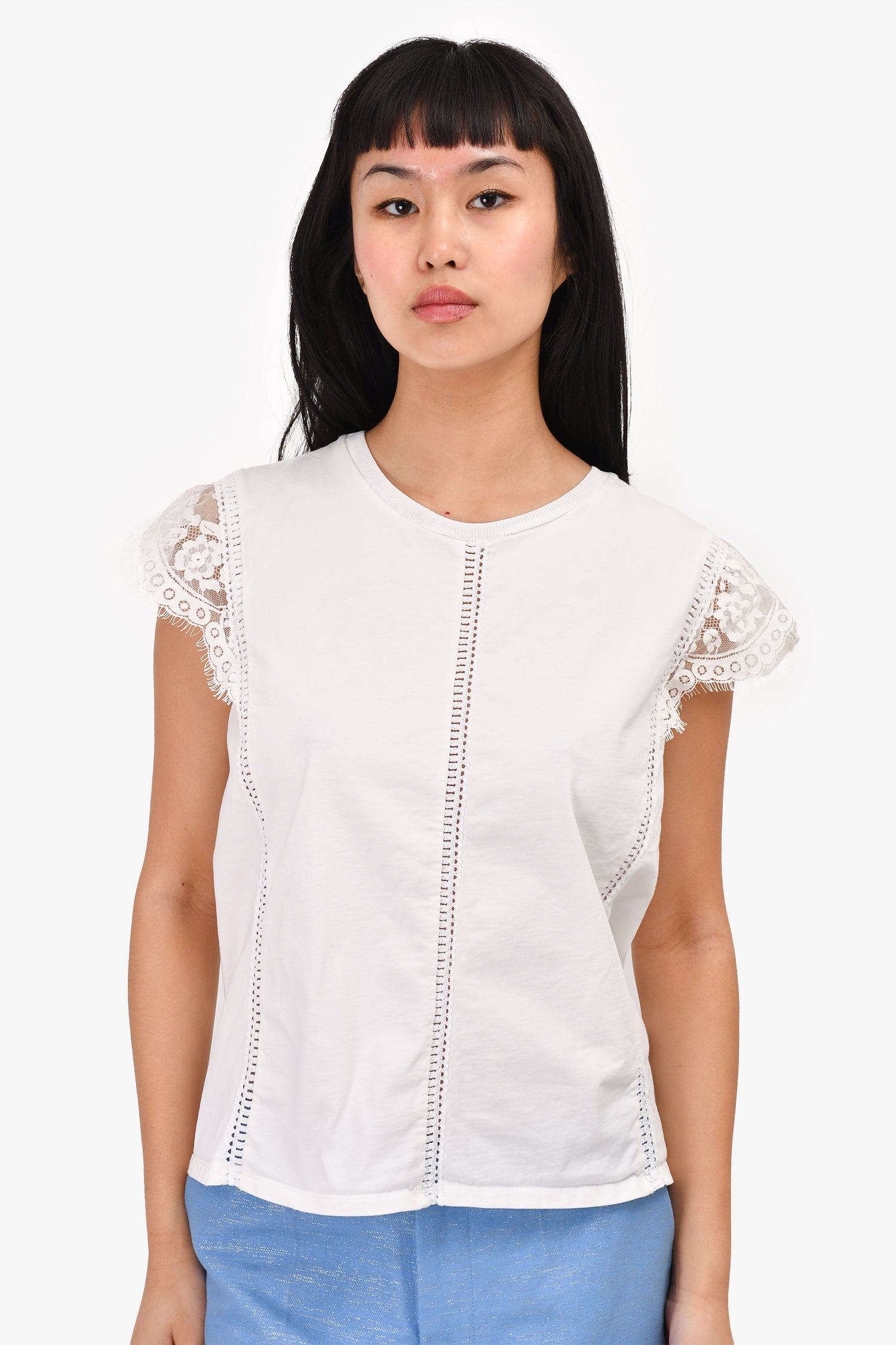 Refresh availabilitySandro White Sleeveless Shoulder Detail Top. Round, ribbed neck.