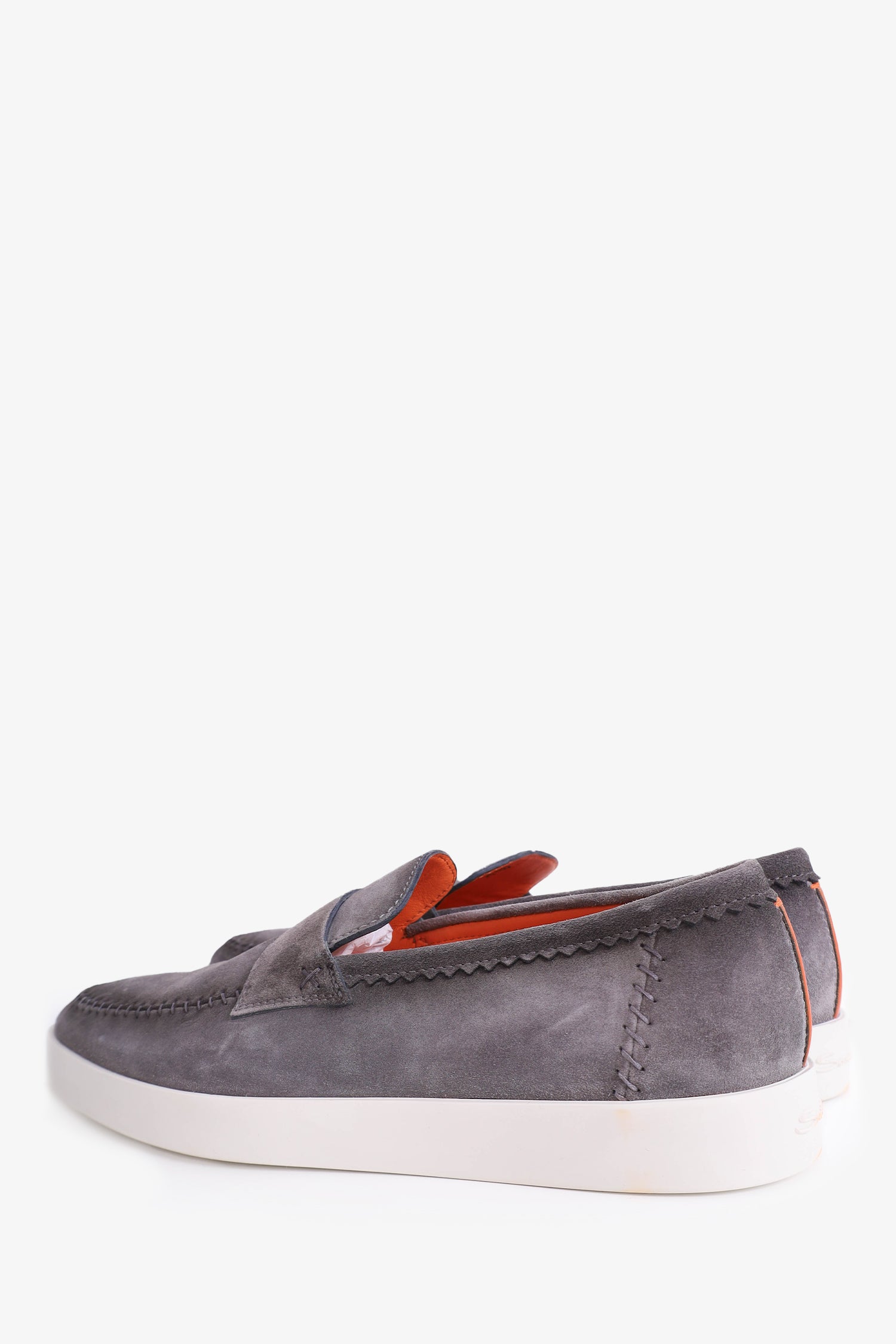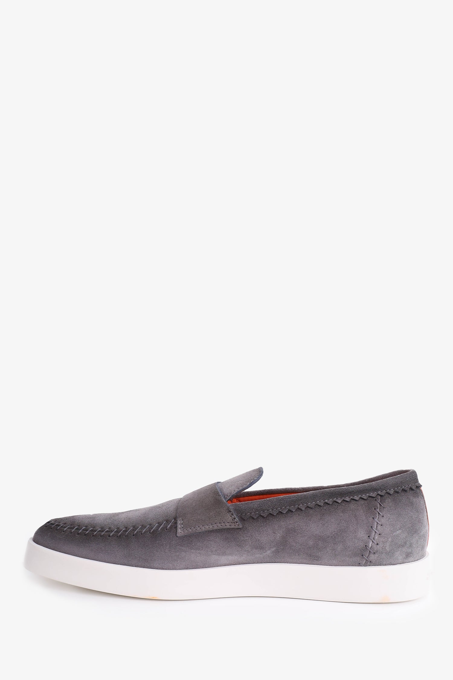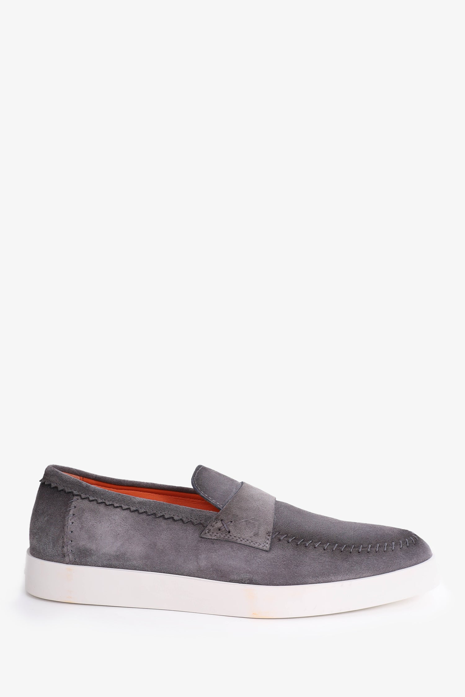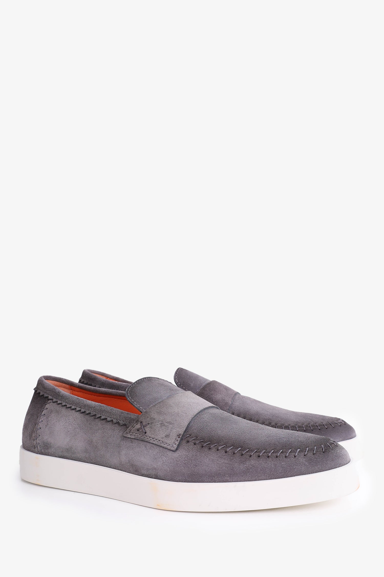 Refresh availabilitySantoni Grey Suede Atlantis Loafers. Slip-on. Round toe. Tonal stitching.