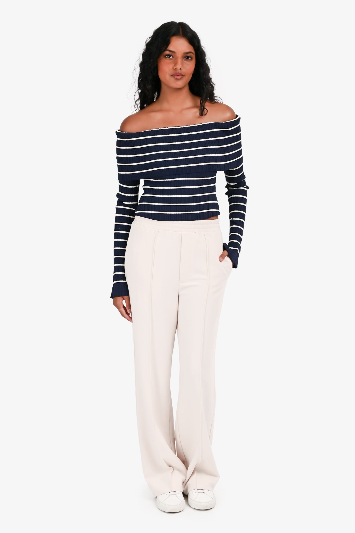 Refresh availabilitySea New York Beige Front Seam Elastic Waist Pants. Elastic waistband. Front seam detailing. Side pockets. Tonal stitching.
