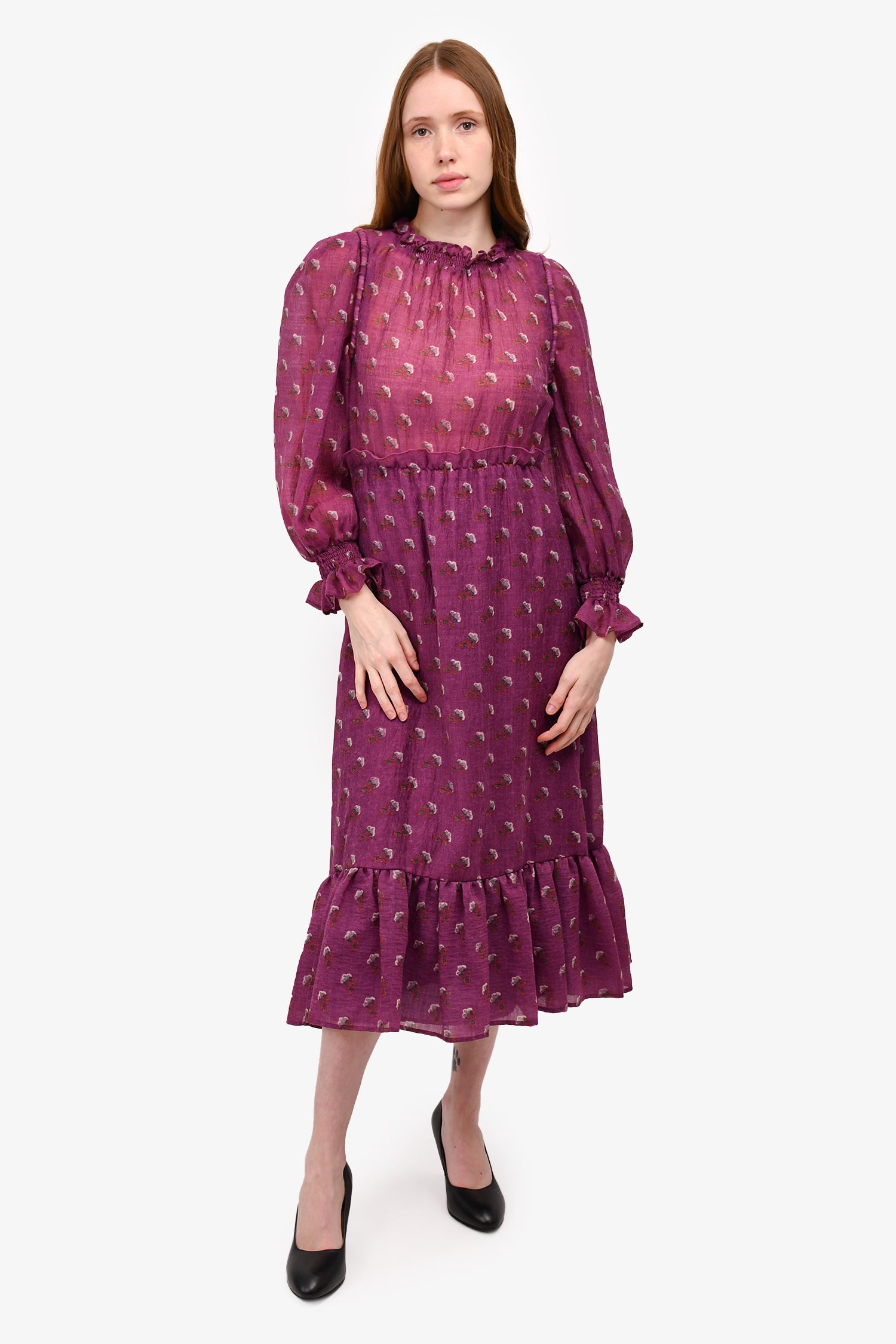Sea New York Purple Patterned Ruffle Neckline Maxi Dress Size 6