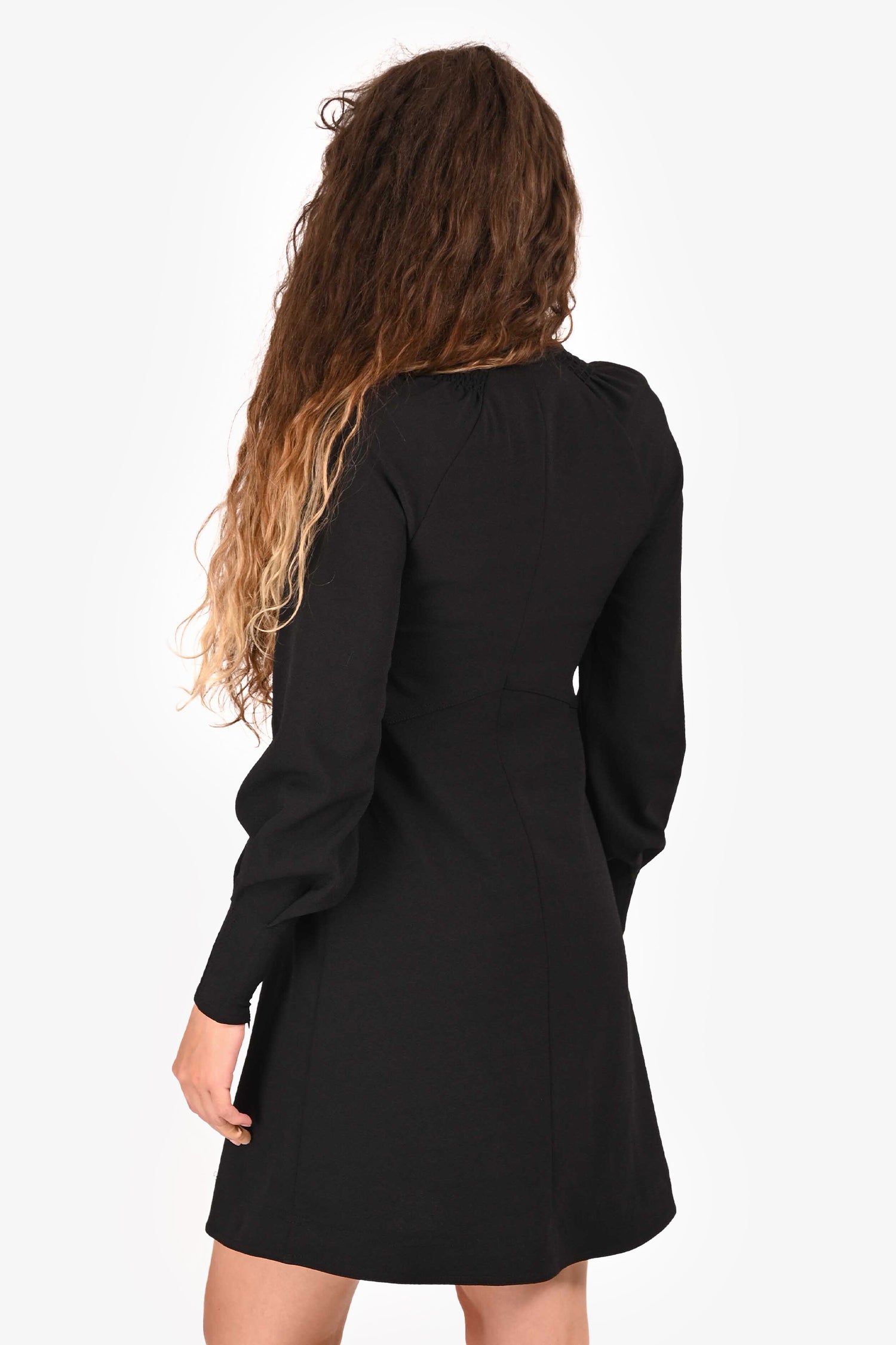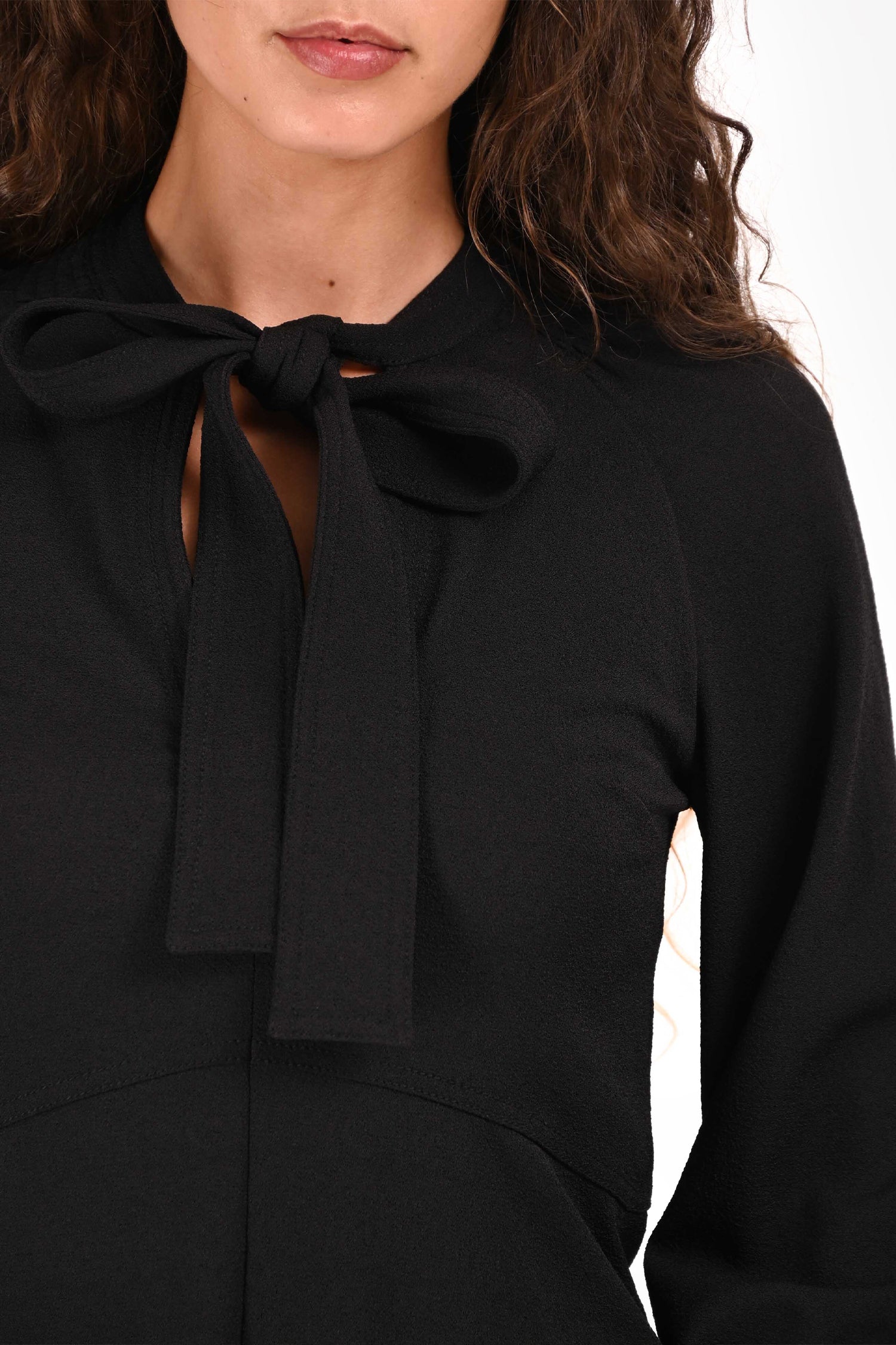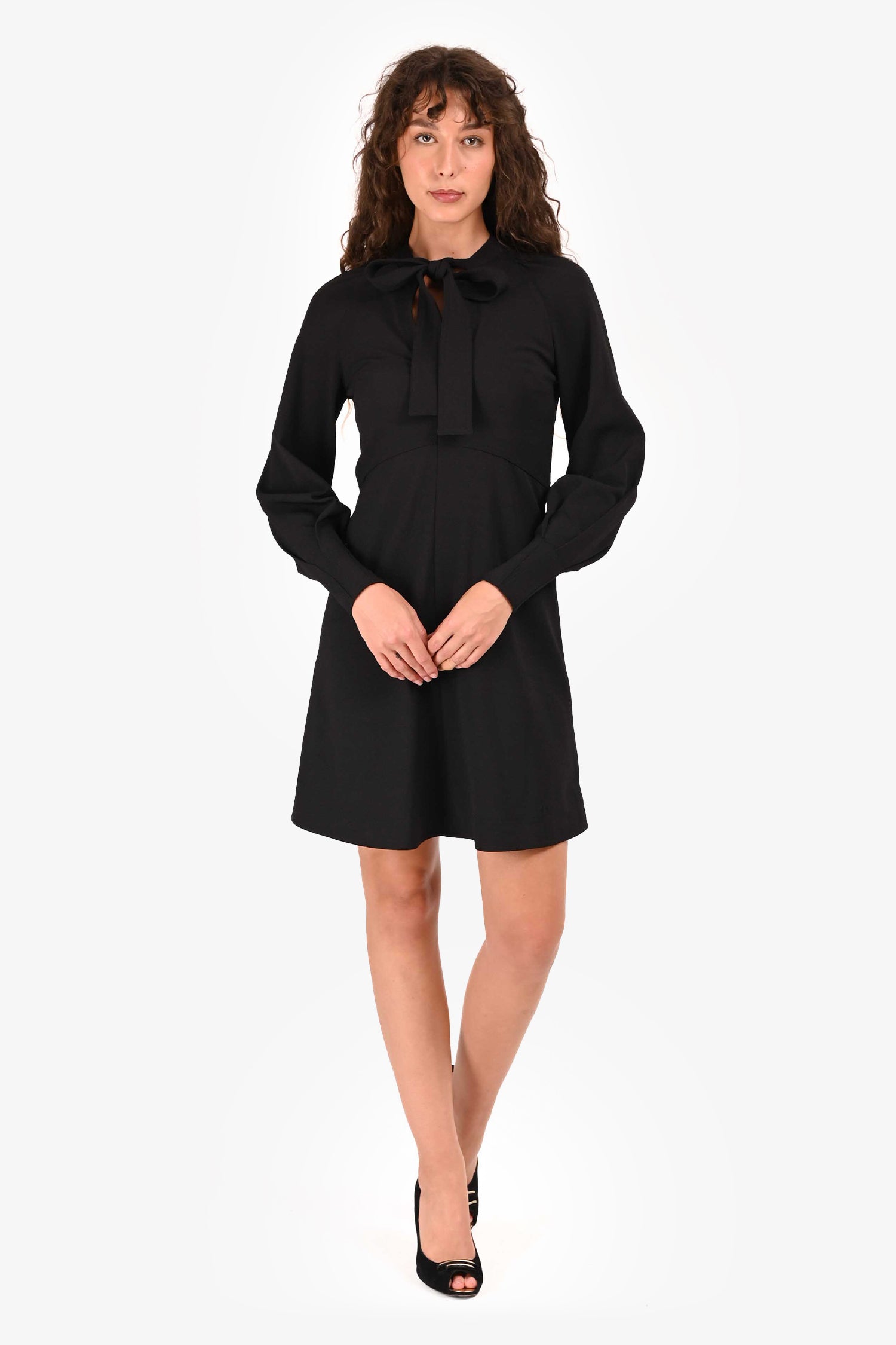Refresh availabilitySee by: Chloe Black Crepe Long Sleeve Necktie Mini Dress. V-neckline with attached necktie detail. Long sleeves with zipped cuffs. Tonal stitching.