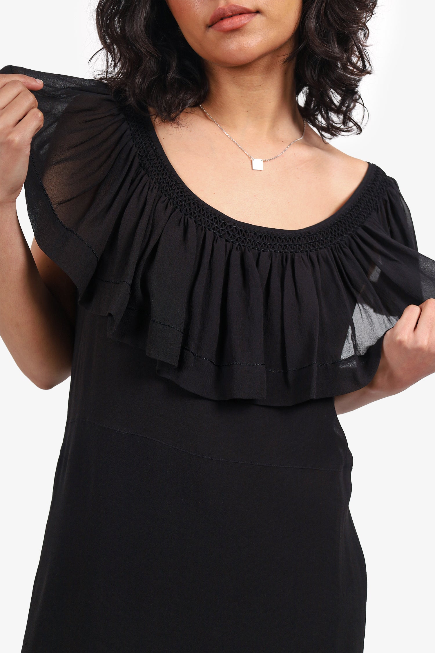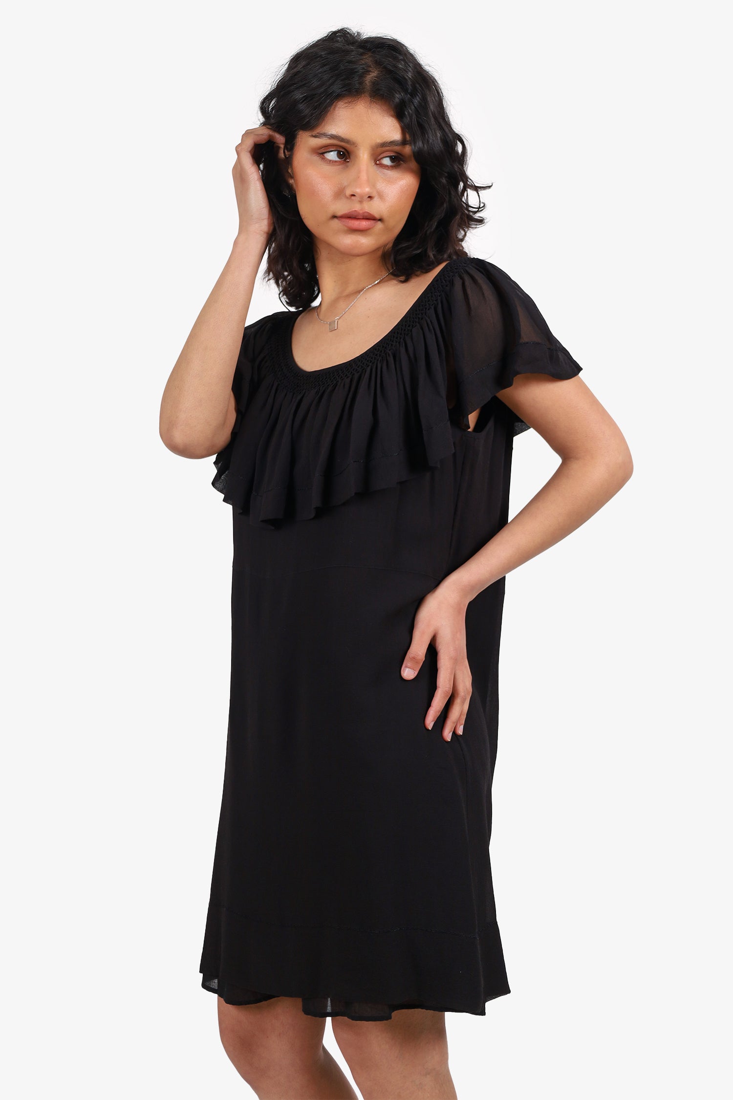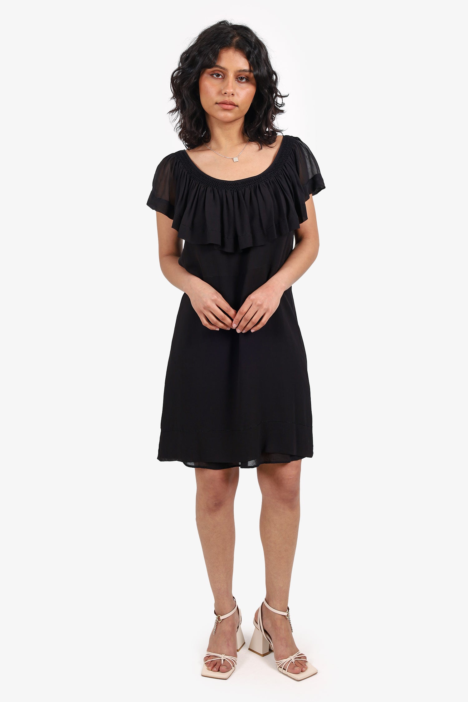 See by Chloe Black Crepe Silk Draped Mini Dress Size 6