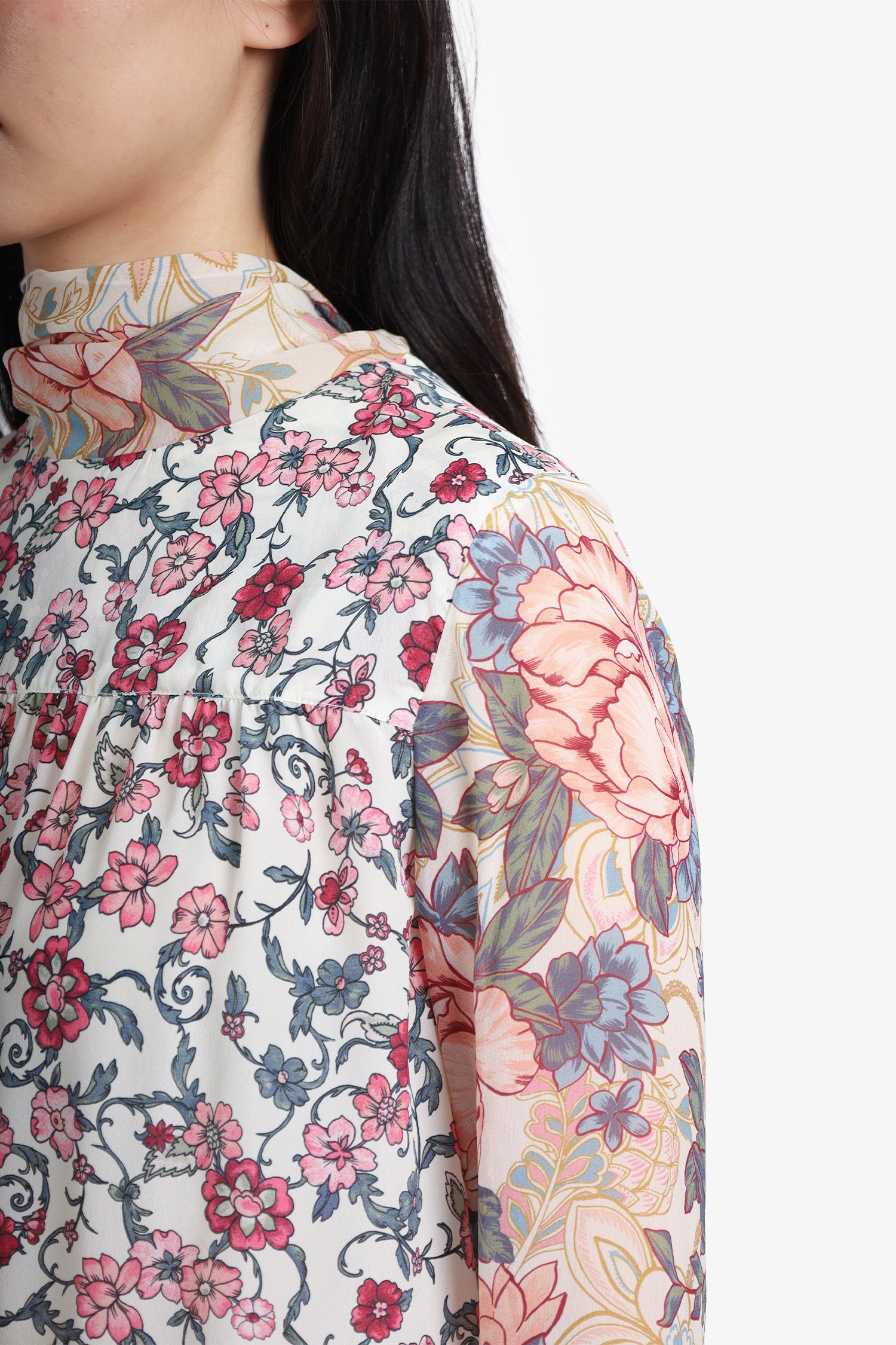 Refresh availabilitySee By Chloe Multicolour Silk Floral Print Blouse. High neckline with back tie up and button closure. Button detailing on cuffs. Tonal stitching.