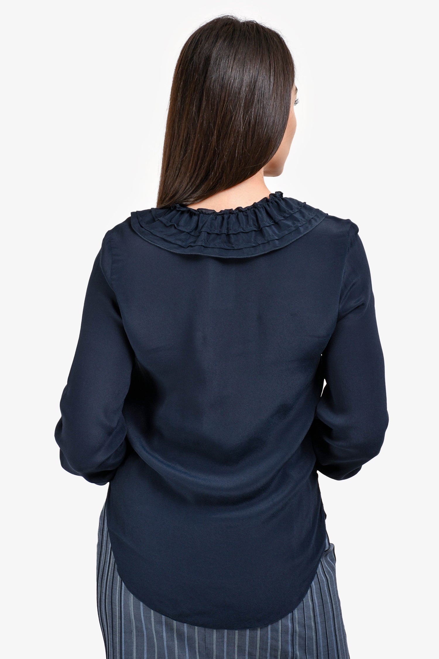 See by Chloe Navy Silk Ruffled Blouse Size 34