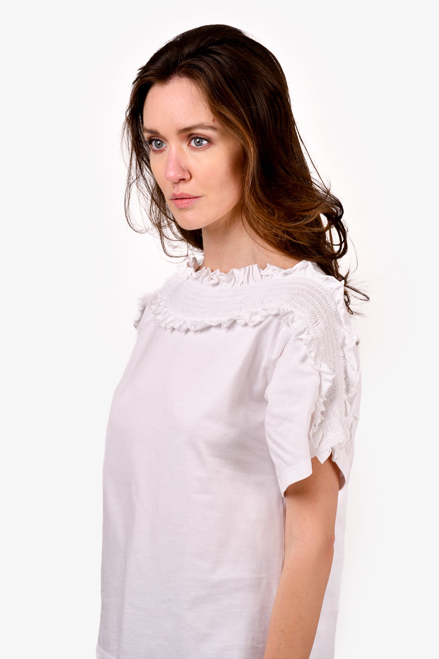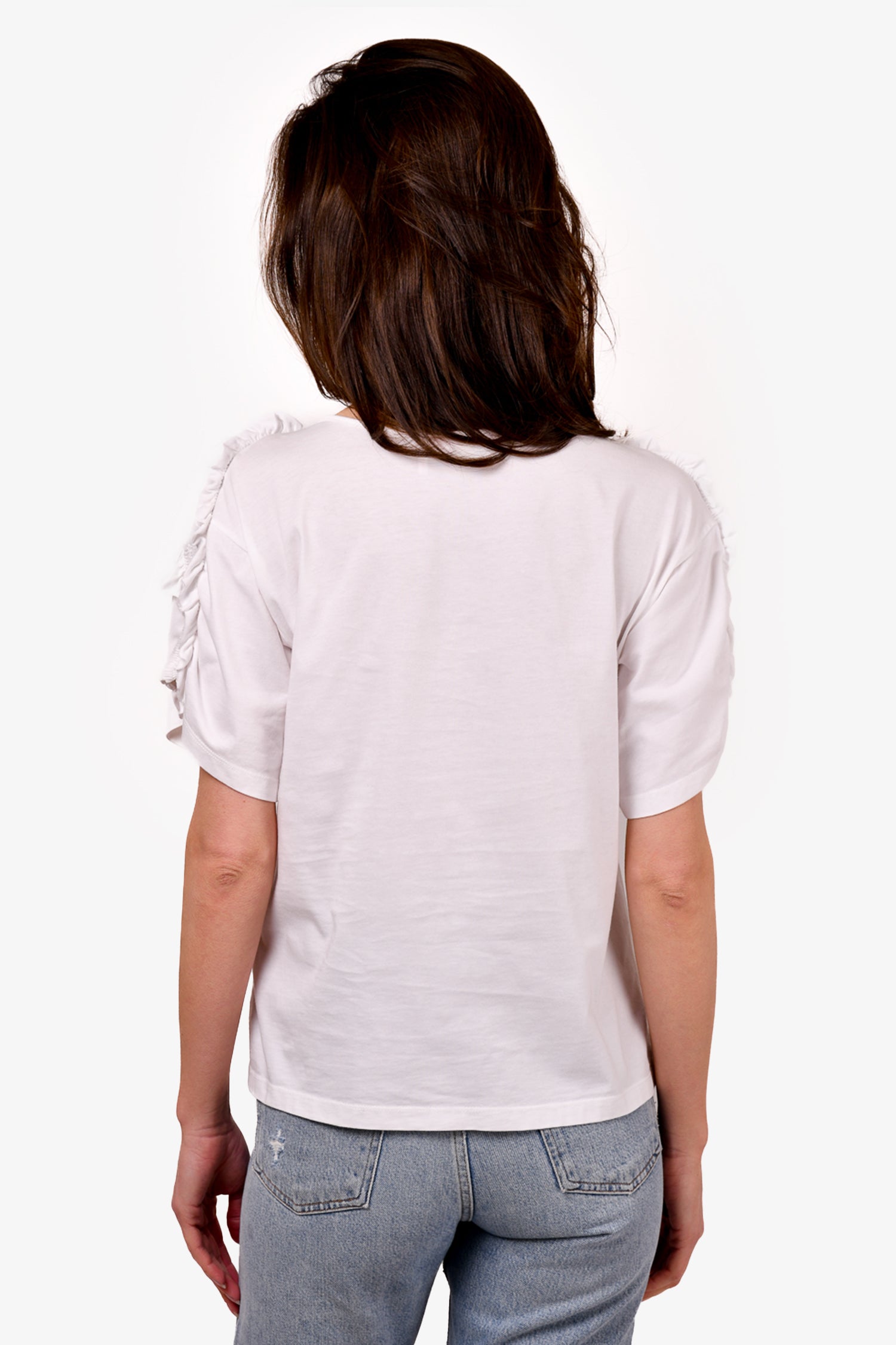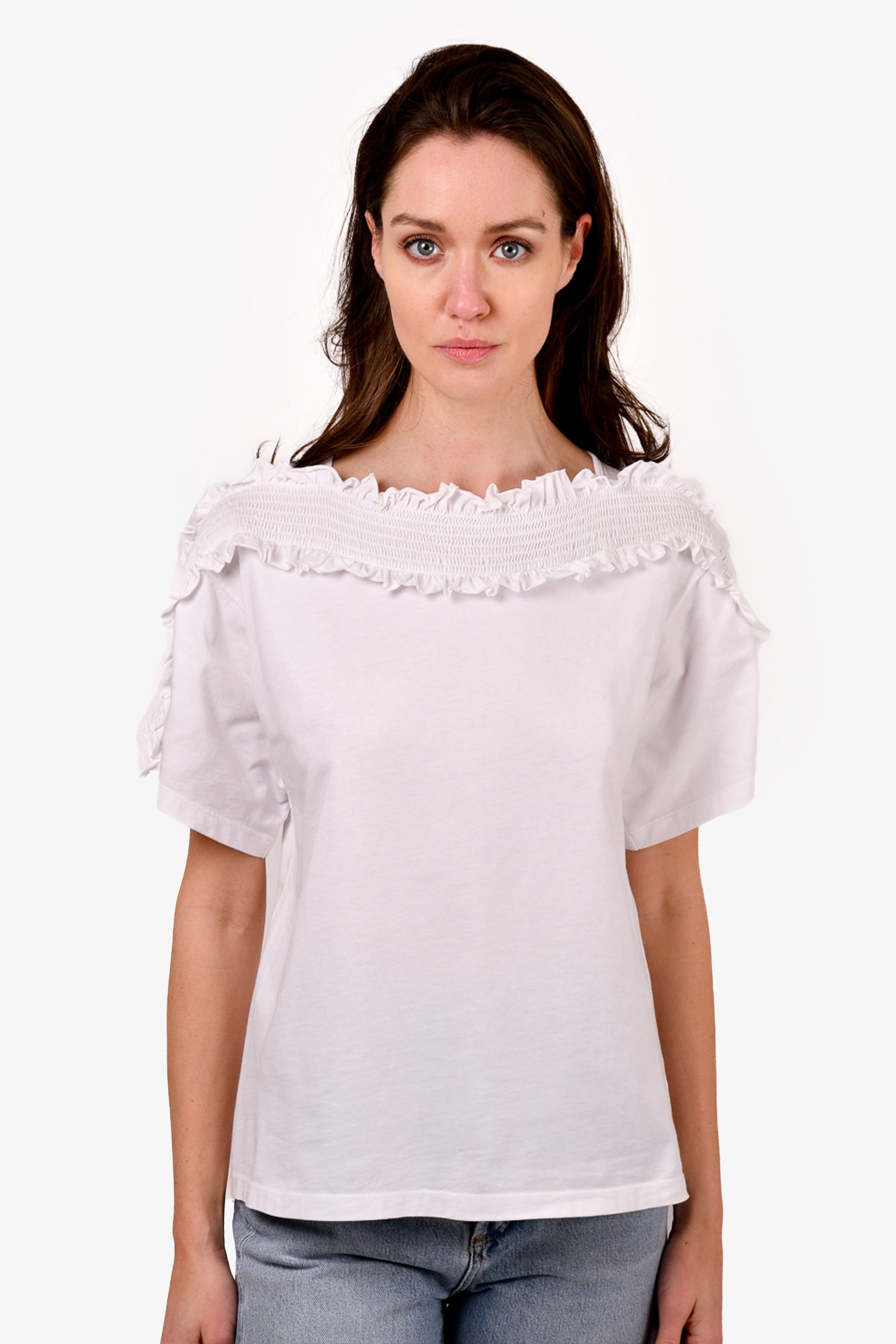 Refresh availabilitySee By Chloe White Ruffle T-Shirt. Pull-on. Tonal stitching.