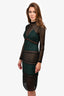 Self-Portrait Black/Green Perforated Midi Dress Size 2