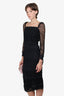 Self-Portrait Black Lace Sleeve Polka Dot Dress Size 2