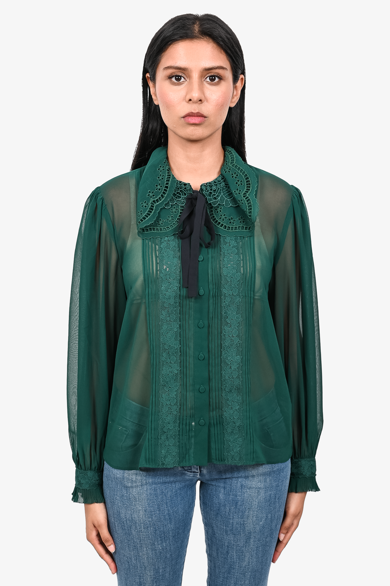 Self-Portrait Dark Green Chiffon Blouse Size 8 US