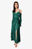Self-Portrait Green Satin V-neck Midi Dress Size 4